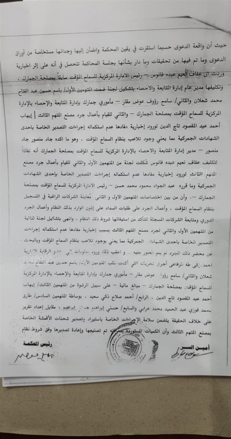 انفراد، نص التحريات في قضية «رشوة السماح المؤقت بالجمارك» (مستندات)