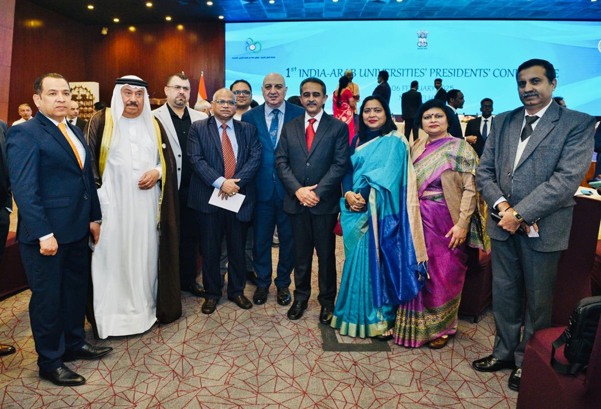 نظمت وزارة الشؤون الخارجية، بالتعاون مع لجنة المنح الجامعية (UGC) كشريك معرفي وجامعة الدول العربية (LAS) كمنظم مشارك، المؤتمر الأول لرؤساء الجامعات الهندية العربية بنجاح في معهد سوشما سواراج بهاوان، نيودلهي، في الفترة من 5 إلى 6 فبراير 2025.