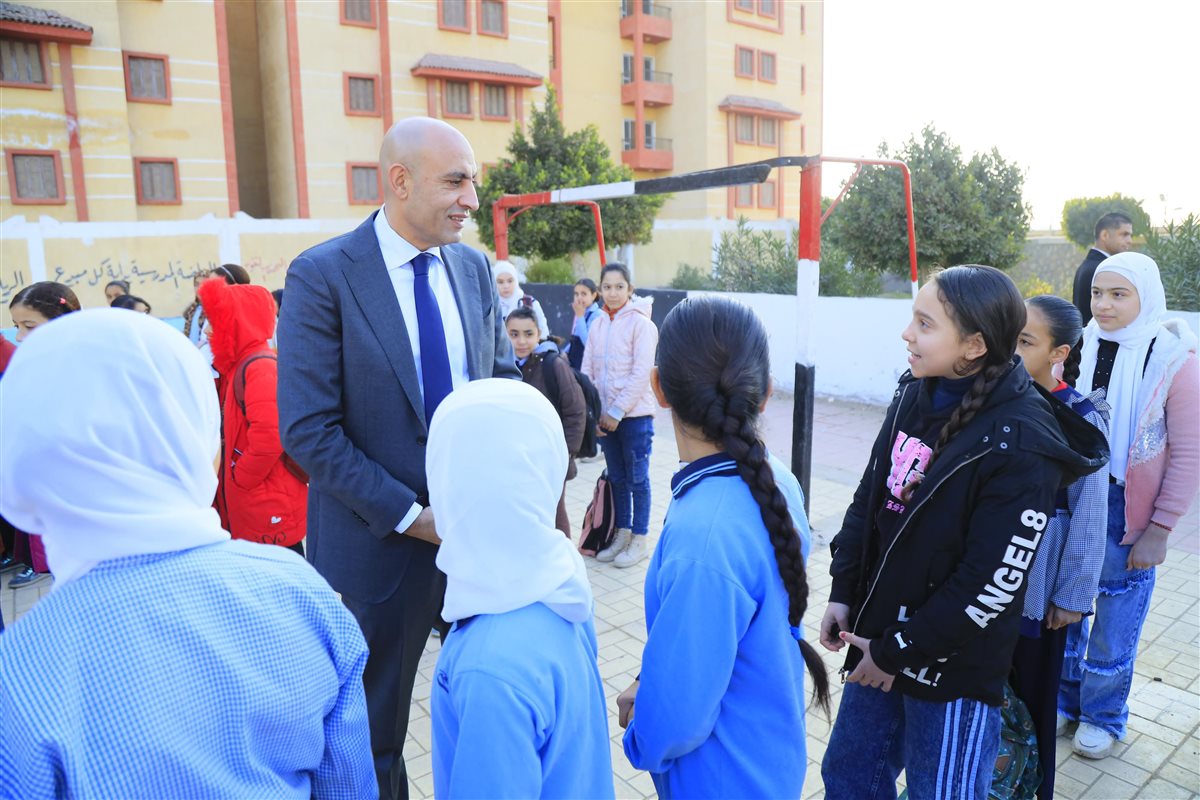 واستهل الوزير زيارته بتفقد مدرسة "عمر بن الخطاب للتعليم الأساسي"، التابعة لإدارة القُرين التعليمية بمحافظة الشرقية، والتى يبلغ إجمالى عدد الطلاب بها (١٢٣٢) طالبا وطالبة، وتضم مراحل رياض الأطفال، والابتدائية، والإعدادية.