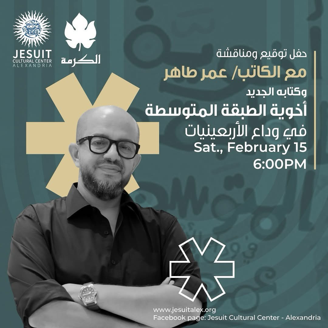 تنظم دار الكرمة للنشر والتوزيع، بالتعاون مع مركز جيزويت الإسكندرية، في تمام السادسة من مساء السبت المقبل الموافق 15 فبراير الجاري، حفل توقيع ومناقشة كتاب “أخوية الطبقة المتوسطة.. في وداع الأربعينيات” للكاتب عمر طاهر.
