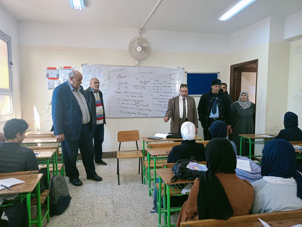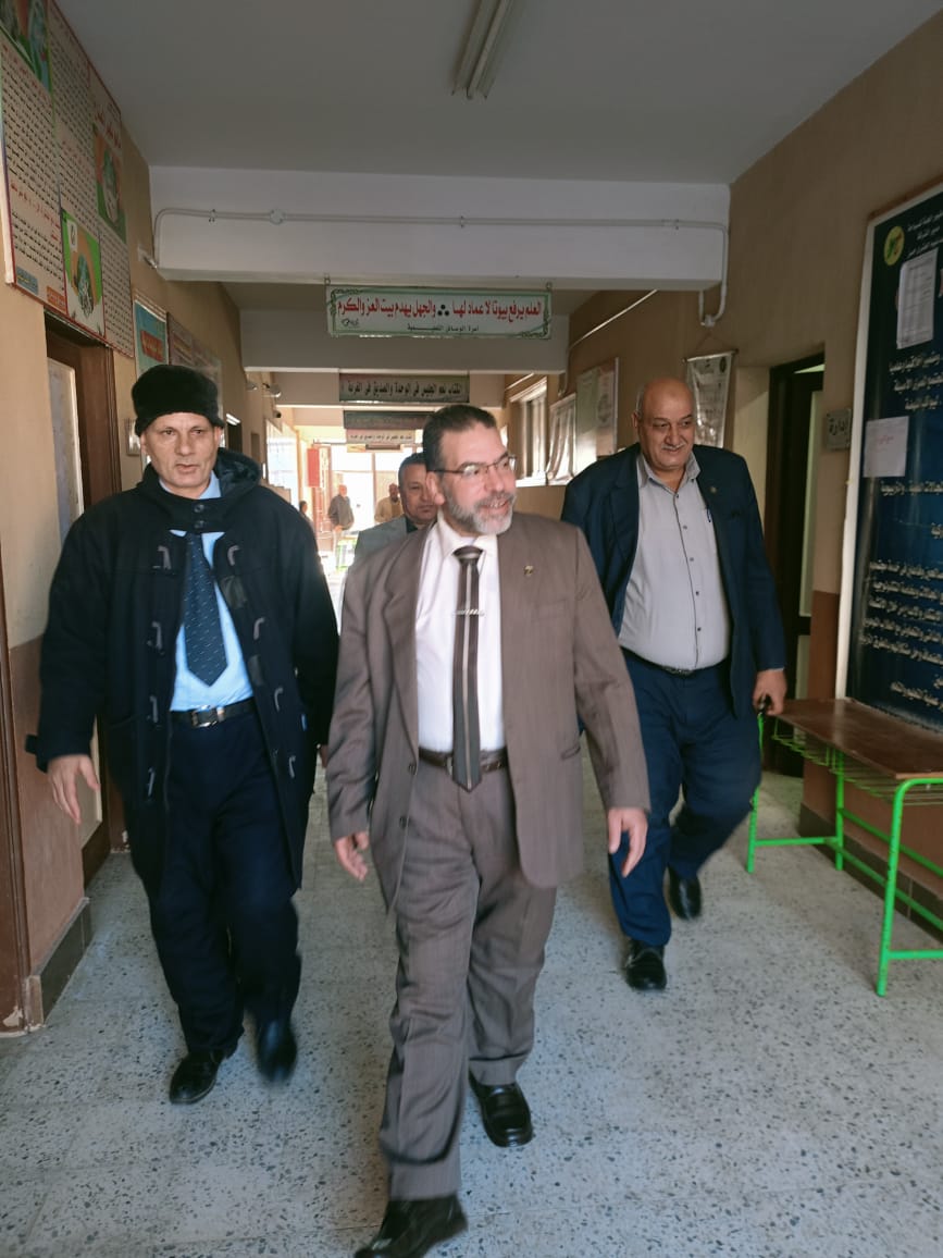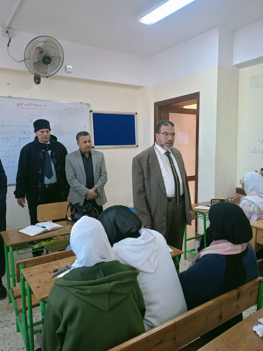 واطلع وكيل المديرية على نسب حضور وغياب الطلاب وأكد على ضرورة تسجيل غياب الطلاب في دفتر المعلم كما قام بمراجعة دفاتر المكتب والكثافات داخل الفصول.