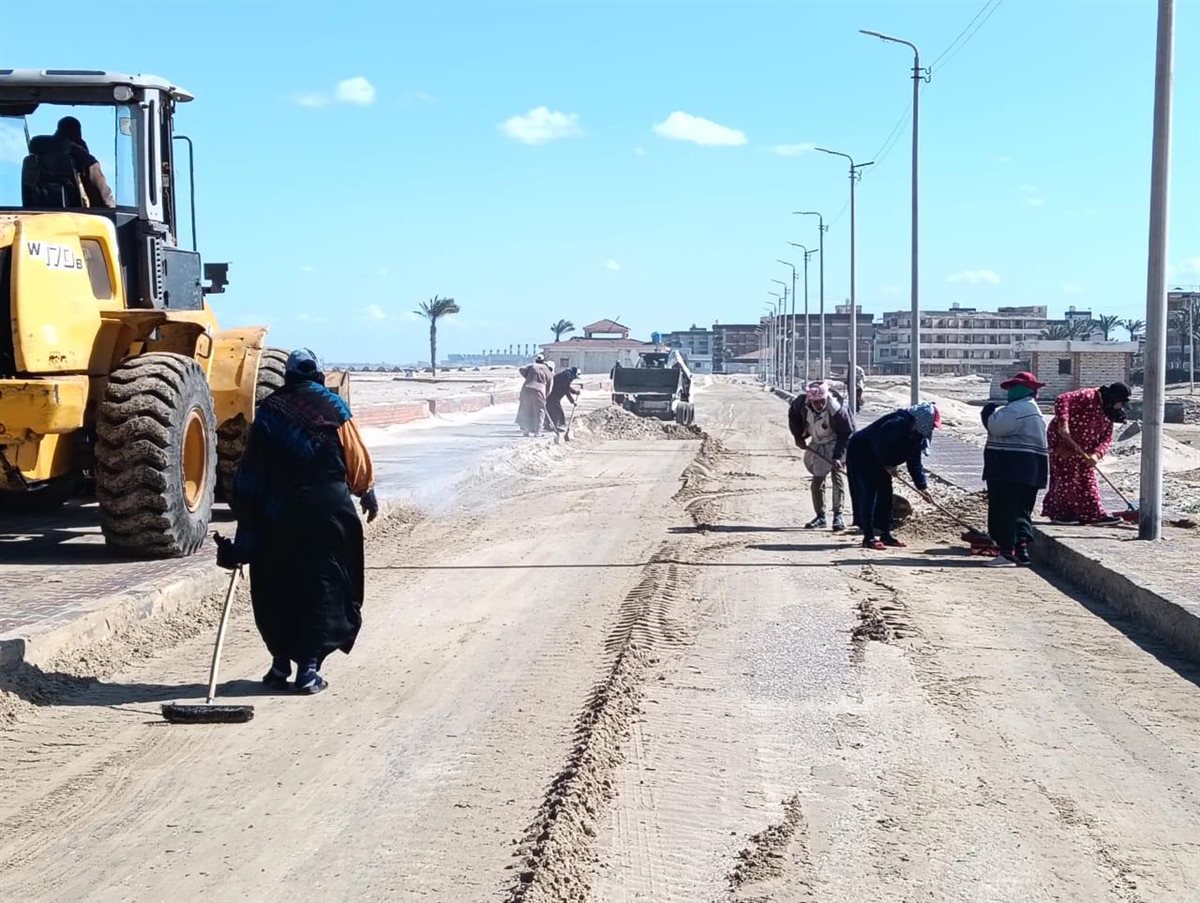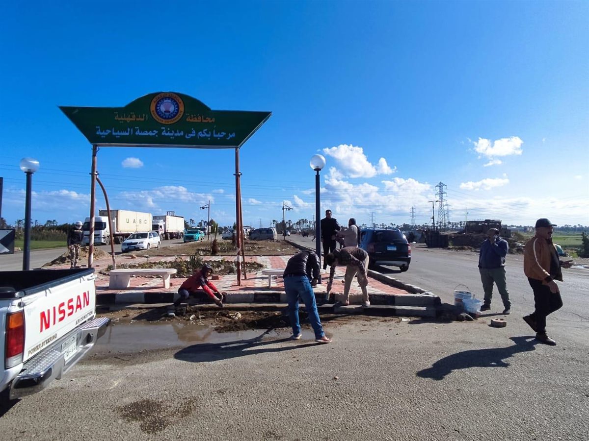 استعدادا للمصيف، بدء أعمال تجميل ورفع كفاءة الكورنيش والشاطئ والمدخل الرئيسي لمدينة جمصة (صور)