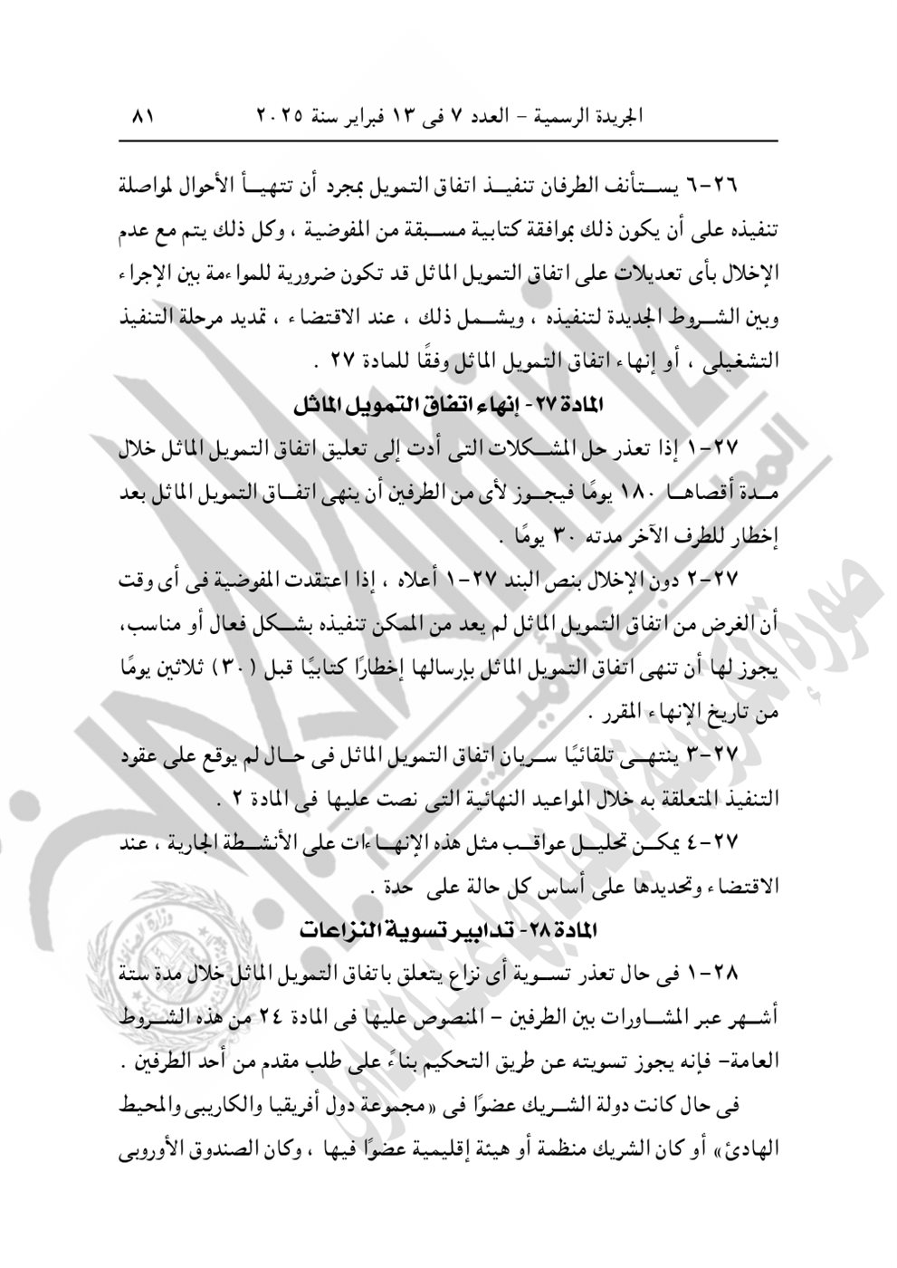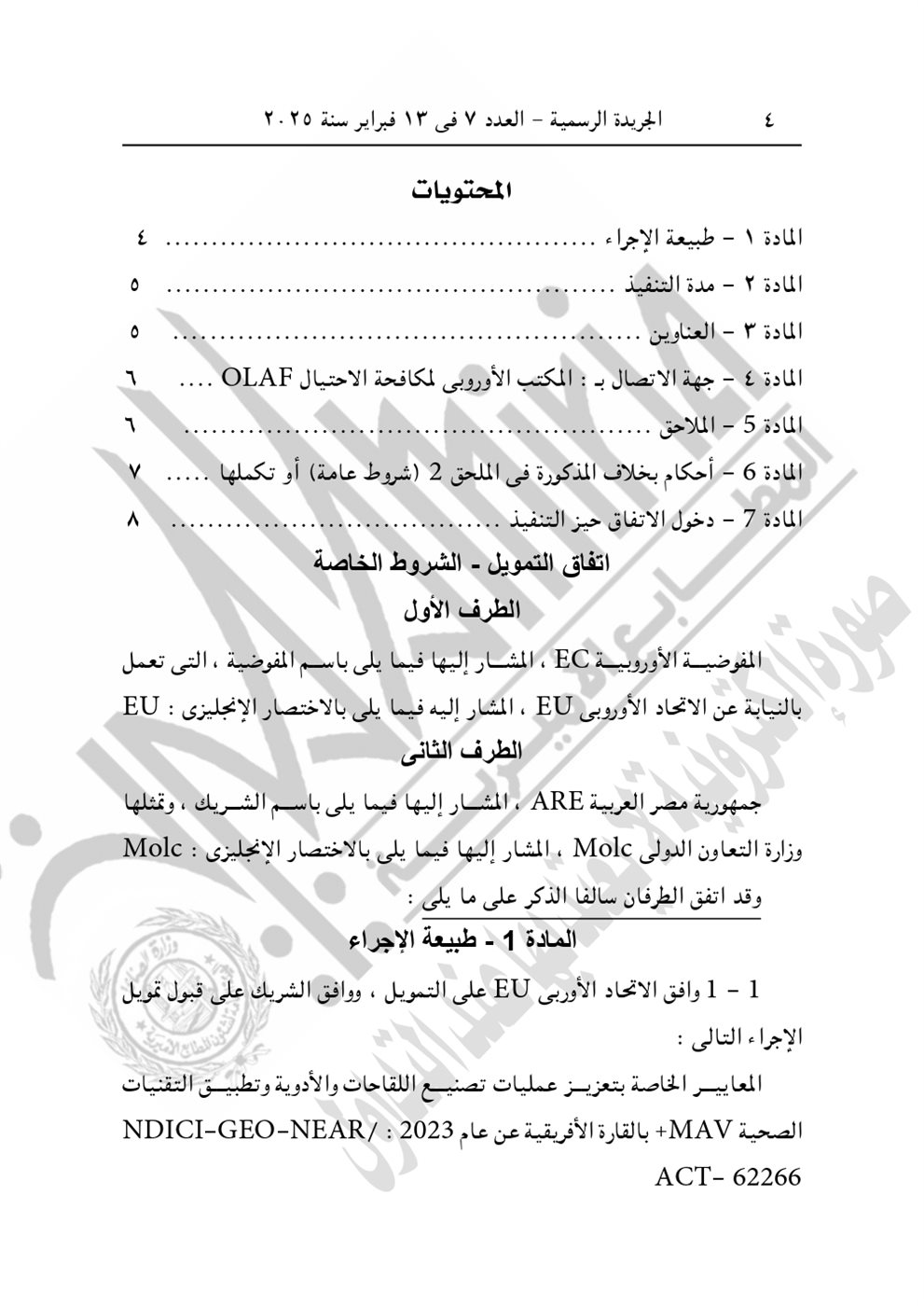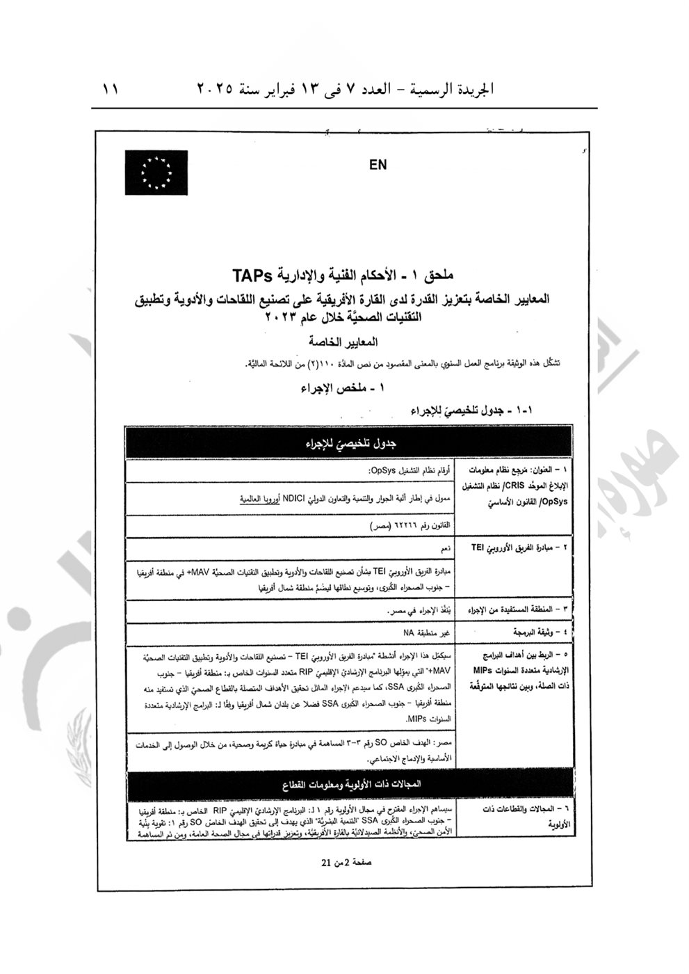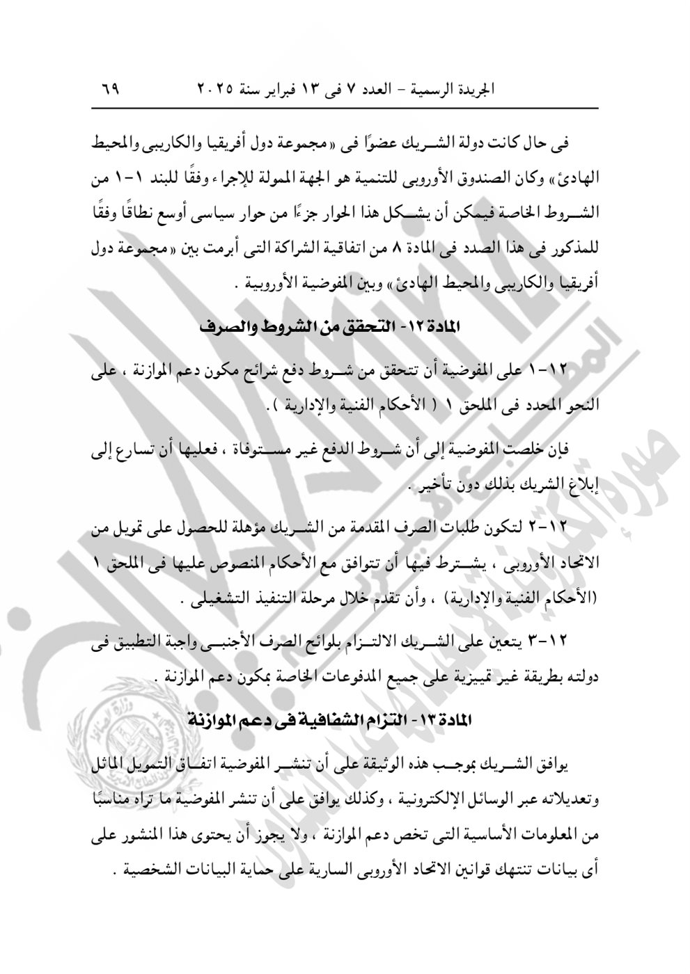 نشرت الجريدة الرسمية في عددها رقم 7، الصادر اليوم الخميس 13 فبراير 2025، القرار الجمهوري الجديد للرئيس عبد الفتاح السيسي رقم 399 لسنة 2024، بشأن الموافقة على الاتفاق التمويلى الخاص بمشروع "المعايير الخاصة بتعزيز عمليات تصنيع اللقاحات والأدوية وتطبيق التقنيات الصحية" بقيمة 3 مليون يورو بين الحكومة المصرية والاتحاد الأوروبي.