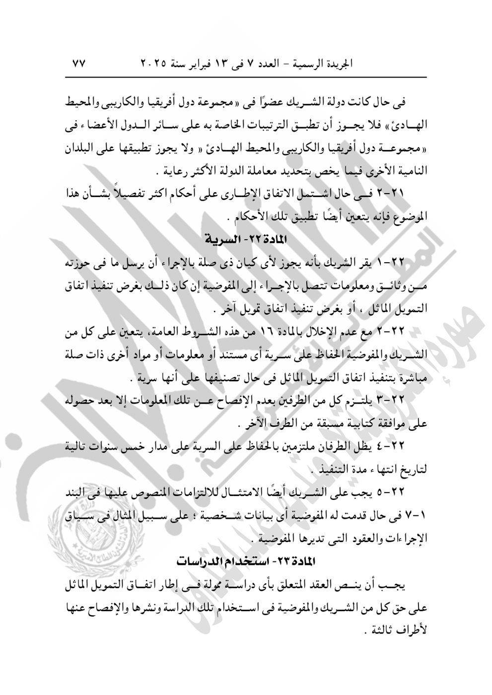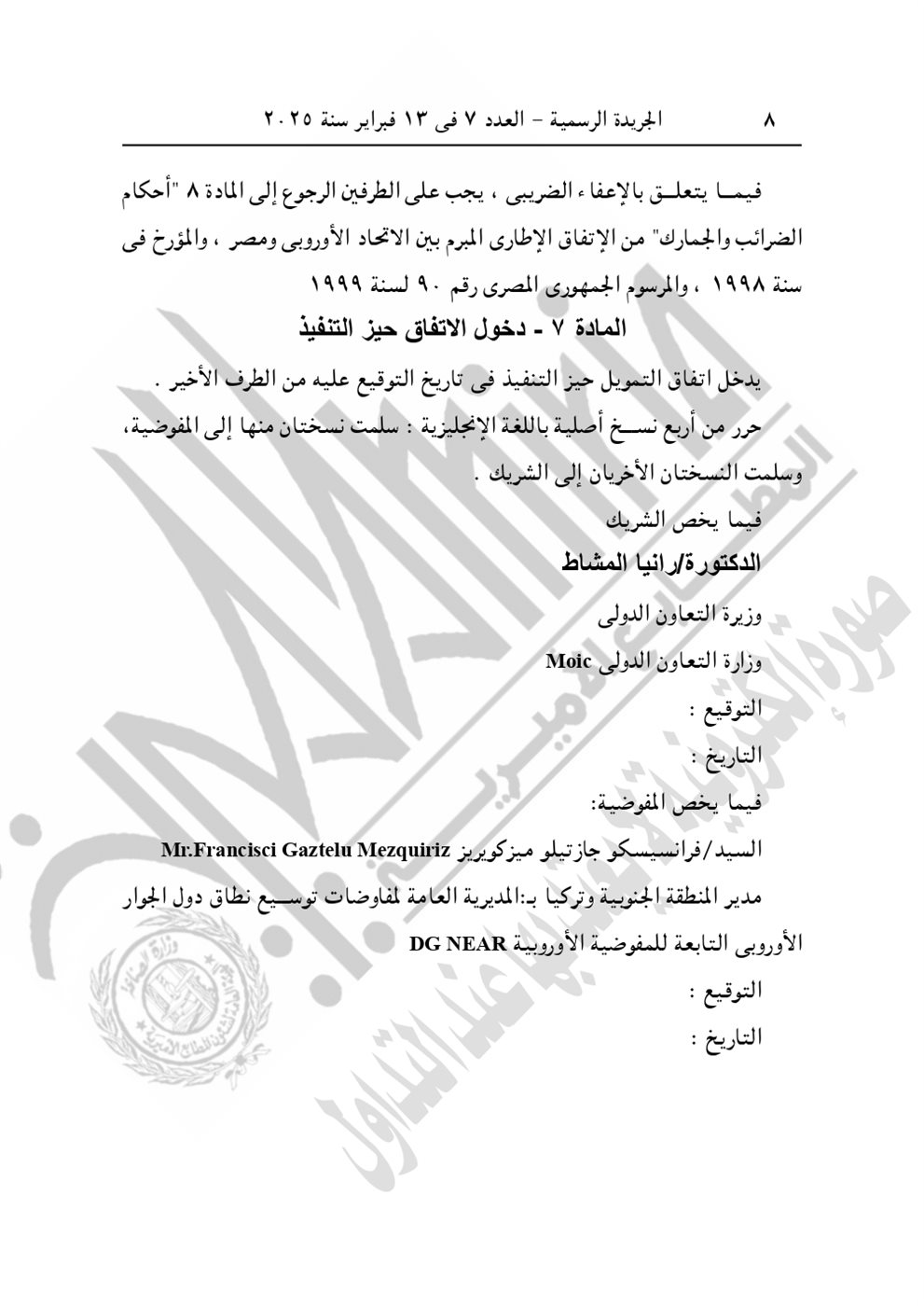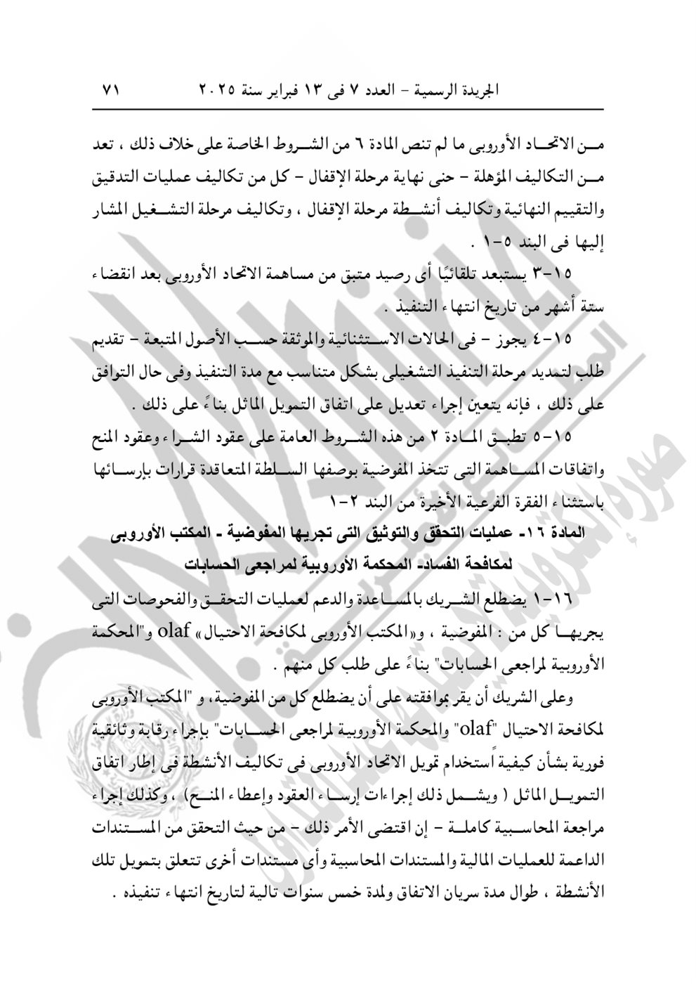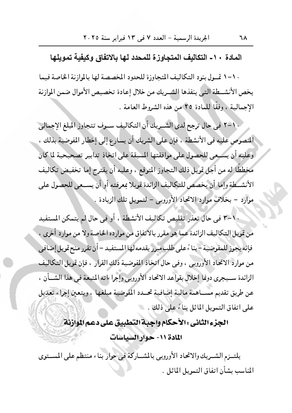 نشرت الجريدة الرسمية في عددها رقم 7، الصادر اليوم الخميس 13 فبراير 2025، القرار الجمهوري الجديد للرئيس عبد الفتاح السيسي رقم 399 لسنة 2024، بشأن الموافقة على الاتفاق التمويلى الخاص بمشروع "المعايير الخاصة بتعزيز عمليات تصنيع اللقاحات والأدوية وتطبيق التقنيات الصحية" بقيمة 3 مليون يورو بين الحكومة المصرية والاتحاد الأوروبي.