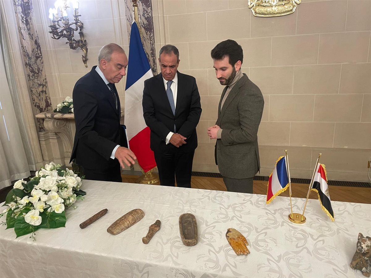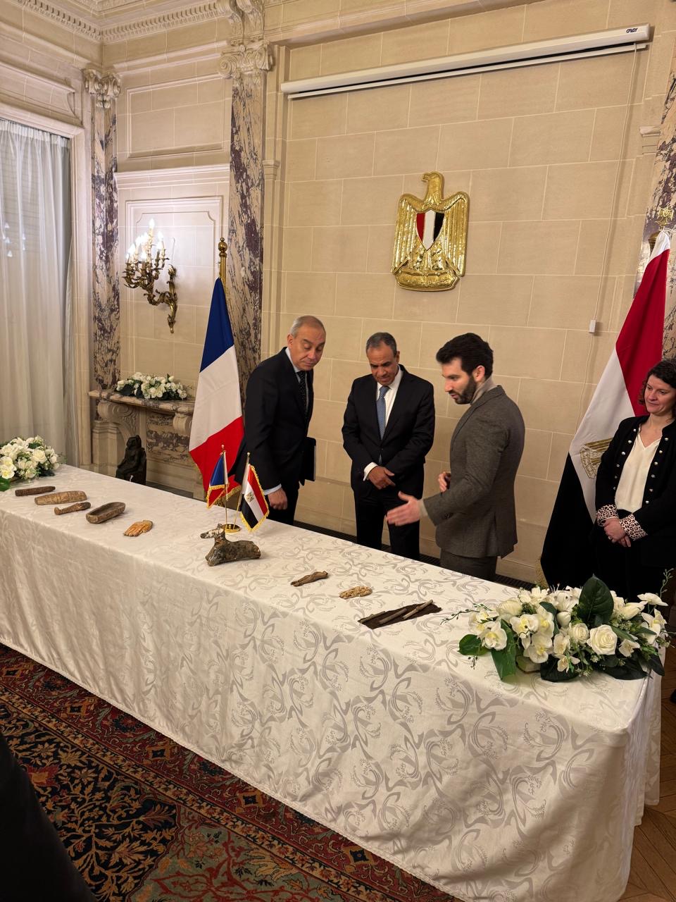 وزير الخارجية يحضر مراسم استرداد قطع أثرية بمقر السفارة المصرية في باريس