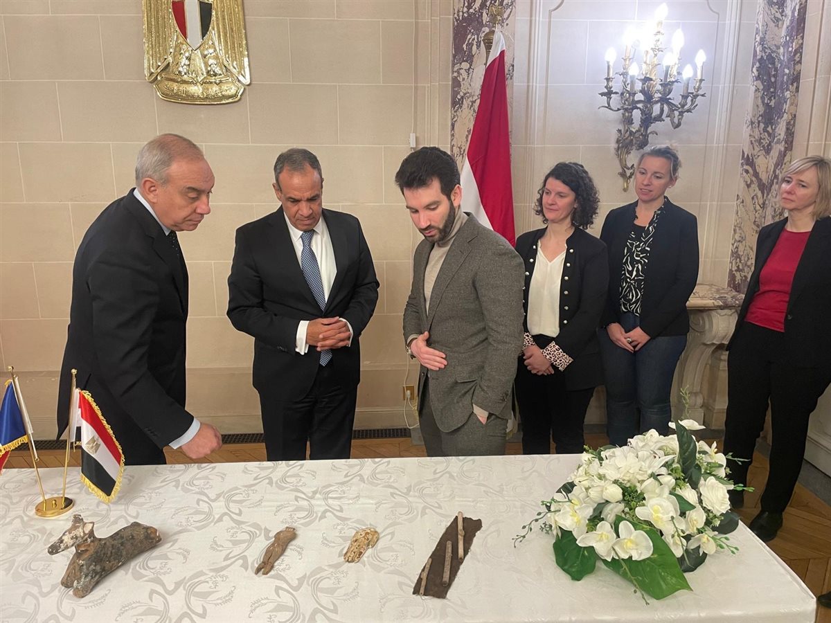 أعرب عبد العاطى عن تقدير مصر للجانب الفرنسى على تعاونه فى استرداد القطع الأثرية، مشيدًا بجهود السلطات الفرنسية فى استعادة الآثار المصرية المهربة باعتبارها إرثًا تاريخيًا وثقافيًا، مؤكدًا على أهمية تكثيف الجهود لملاحقة شبكات تهريب الآثار المصرية.