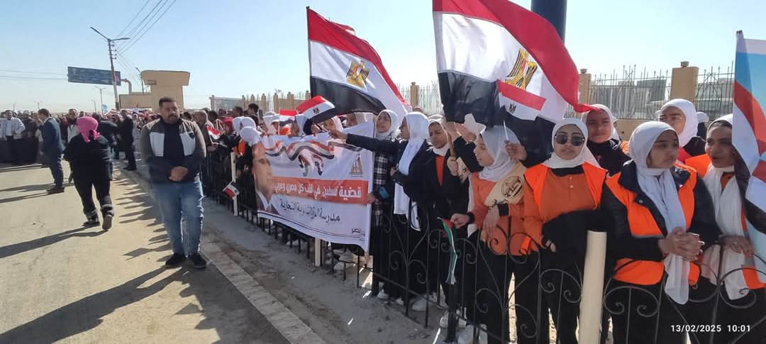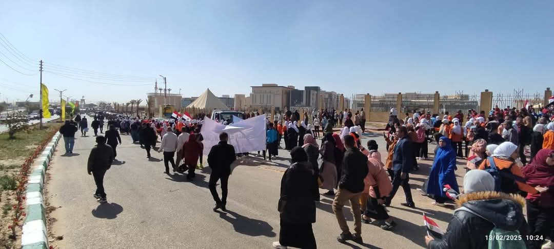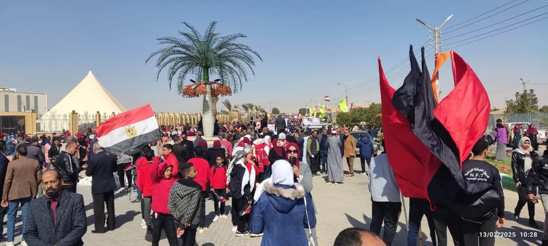 وجاءت هذه المسيرة تحت شعار “لا للتهجير” في رسالة قوية تؤكد أن الضمير العربي لم ولن يموت وأن فلسطين ستظل قضية الأمة المركزية من قلب الوادي الجديد.
