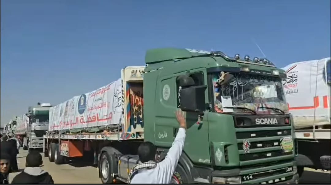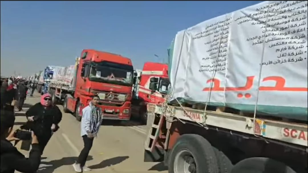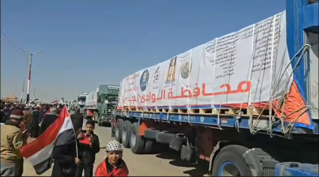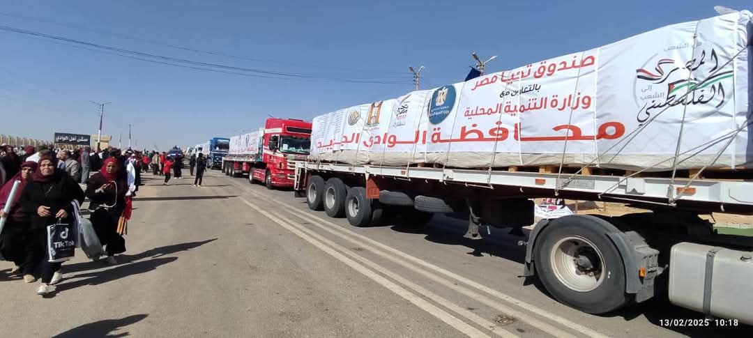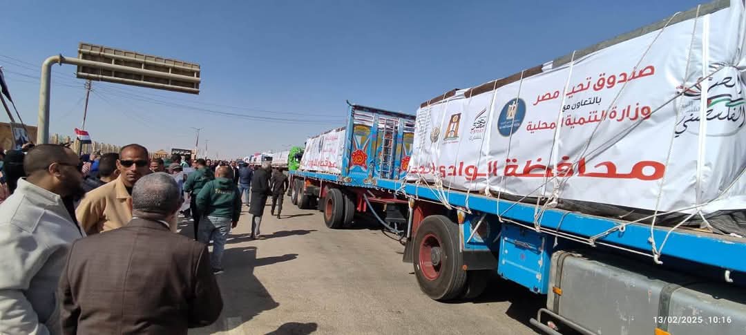 شهدت واحة الخارجة بمحافظة الوادي الجديد، اليوم الخميس، إرسال 50 شاحنة محملة بالمواد الغذائية ضمن قافلة المساعدات الإنسانية للشعب الفلسطيني بقطاع غزة، والتي ساهم بها أبناء المحافظة من خلال التبرعات المختلفة، بالمشاركة مع المؤسسات الخيرية ووزارة التنمية المحلية وصندوق تحيا مصر.