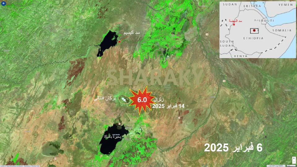 وكتب “شراقي” على صفحته الشخصية بـ"فيس بوك" تحت عنوان “أقوى زلزال داخل إثيوبيا منذ 64 عاما بقوة 6 درجة”، وقال: "يتوالى النشاط الزلزالي بقوة فى إثيوبيا حيث ضرب زلزال قوي بقوة 6.0 درجة على مقياس ريختر فى منطقة الأخدود الإثيوبي بجوار بركان فنتالى الساعة 10:28 م بتوقيت القاهرة يوم 14 فبراير 2025، على عمق 10 كم، وسبق زلزال آخر بقوة 5.8 درجة فى 4 يناير الماضي".