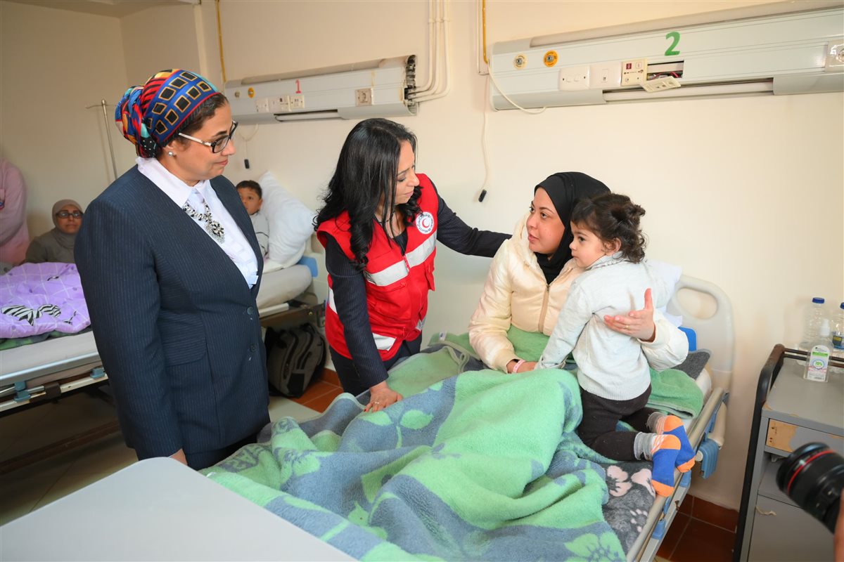 وكانت وزيرة التضامن الاجتماعي رئيس المكتب التنفيذي لوزراء الشؤون الاجتماعية العرب قد حرصت على استقبال عدد من المصابين مرافقيهم الوافدين إلى مصر لتلقي العلاج عبر معبر رفح البري بالورود.
