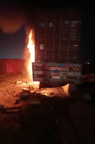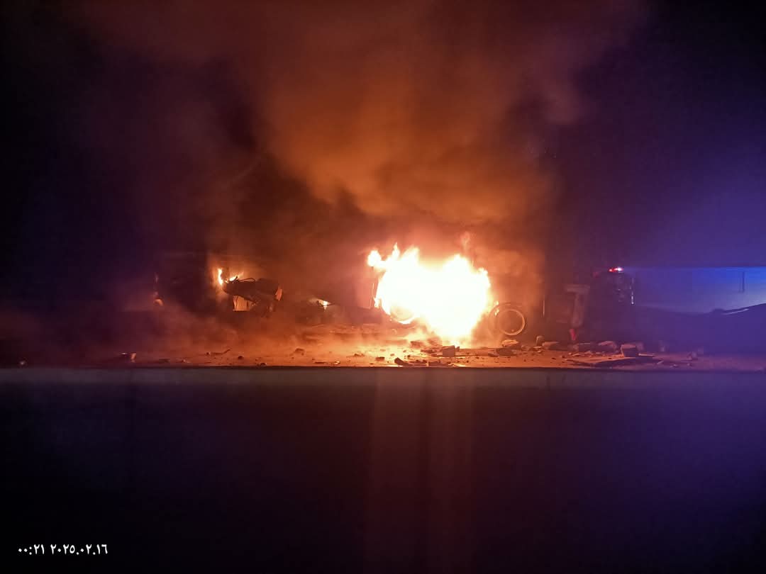 مصرع اثنين في حريق تريلا بالطريق الصحراوي (صور)