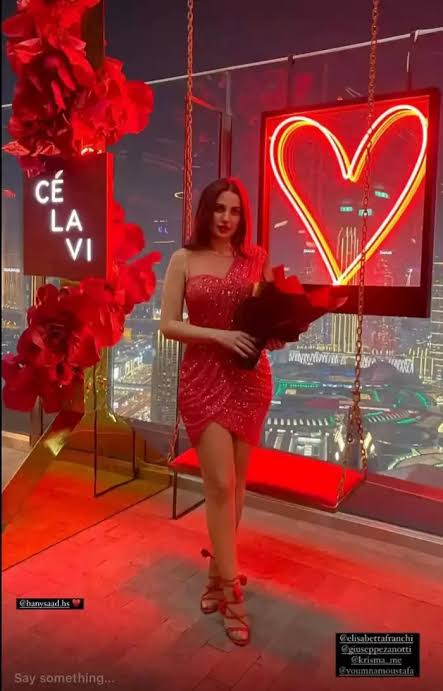 وظهرت درة عبر خاصية ستوري بتطبيق إنستجرام بفستان أحمر قصير مطرز، أبرز رشاقتها وجمالها، كما استعرضت باقة الورود الحمراء التي قدّمها لها زوجها في عيد الحب.