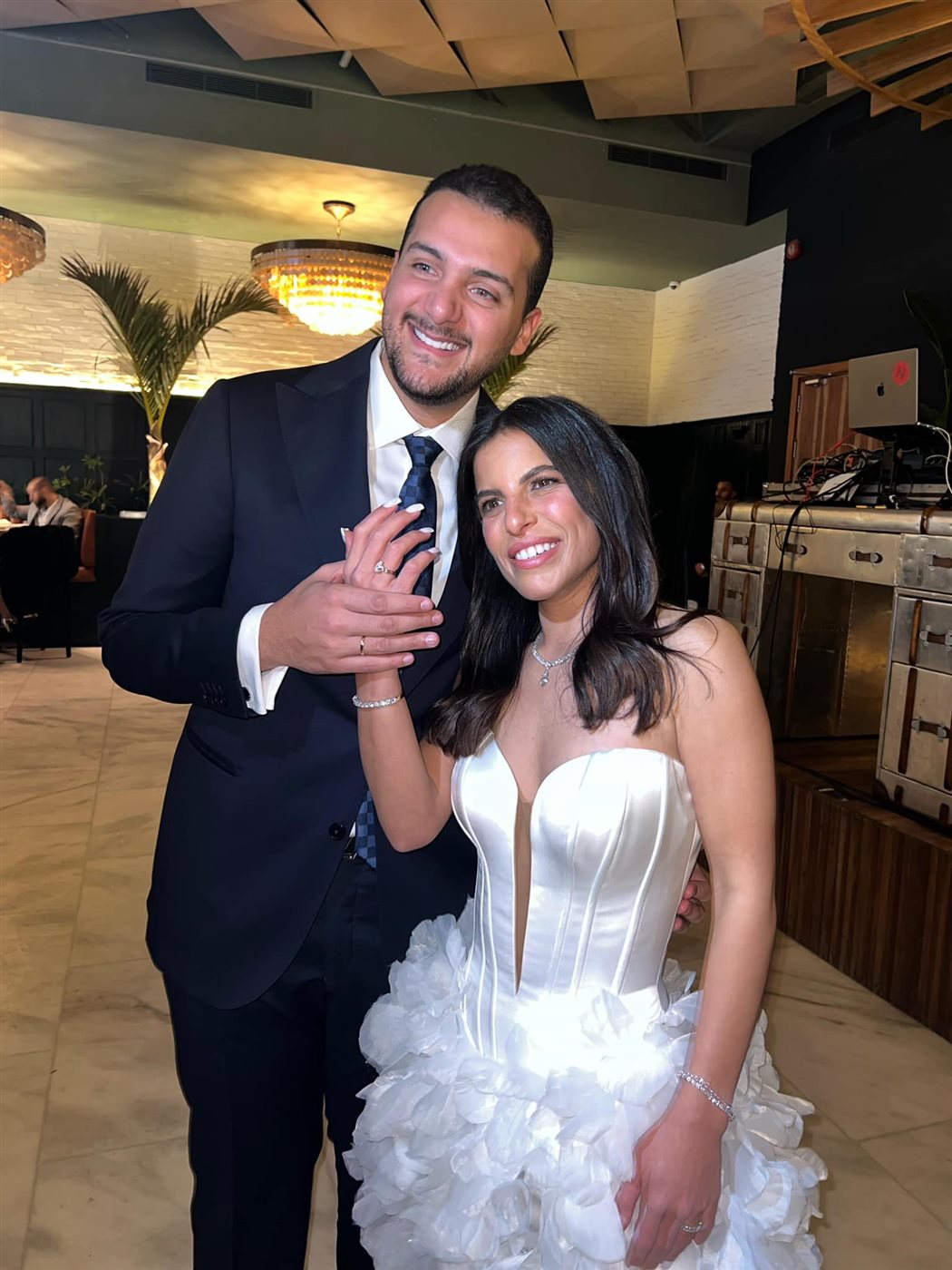 ونشر هاني صور تجمعه بالعروسين وبعض أفراد العائلة، وعلق قائلا: “الحمد لله إمبارح كانت خطوبة ابنى وحبيب قلبي شادى على عروسته ميرنا ربنا يسعدهم يارب ويتمم لهم على خير”.