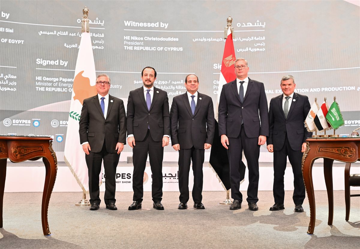 شهد الرئيس عبد الفتاح السيسي والرئيس القبرصي "نيكوس خريستودوليدس"، مراسم التوقيع على خطة تنفيذية في مجال تعاون الطاقة بين مصر وقبرص والسعودية.