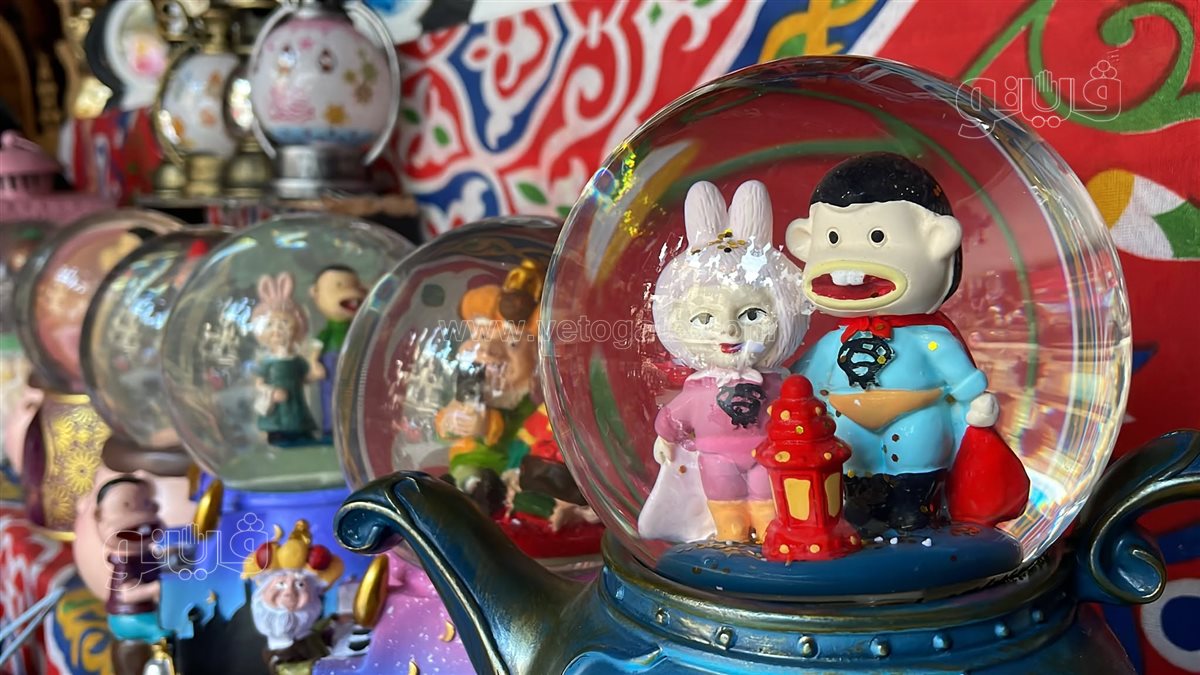 اما بالنسبة للبلورة بداخلها شخصيات مثل ( بوجي، وطمطم، المسحراتي، شخصيات اخري …) جاء سعرها 250 جنيه وهي التي تشهد اقبالا من الاطفال.