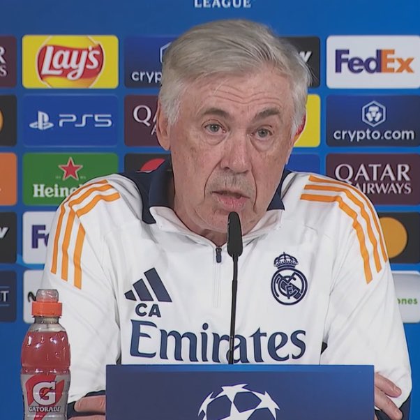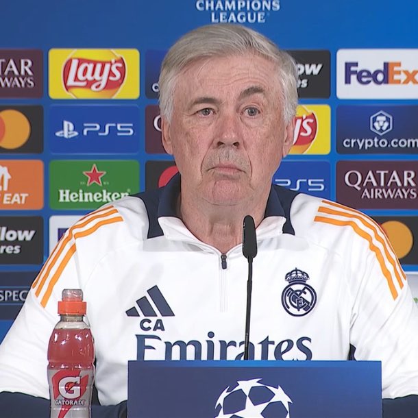 ورد كارلو أنشيلوتي على تصريحات جواديولا المدير الفني لمانشستر سيتي، بأنهم يملكون نسبة 1٪ فقط للتأهل قائلا:" لا أتفق.. يمتلكون نسبة كبيرة وبالطبع نمتلك أفضلية بسيطة بعد مباراة الذهاب ويجب أن نستفيد منها.