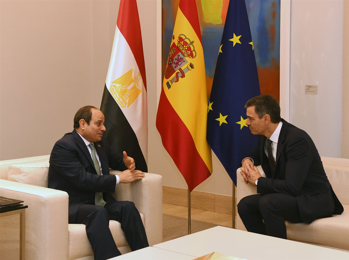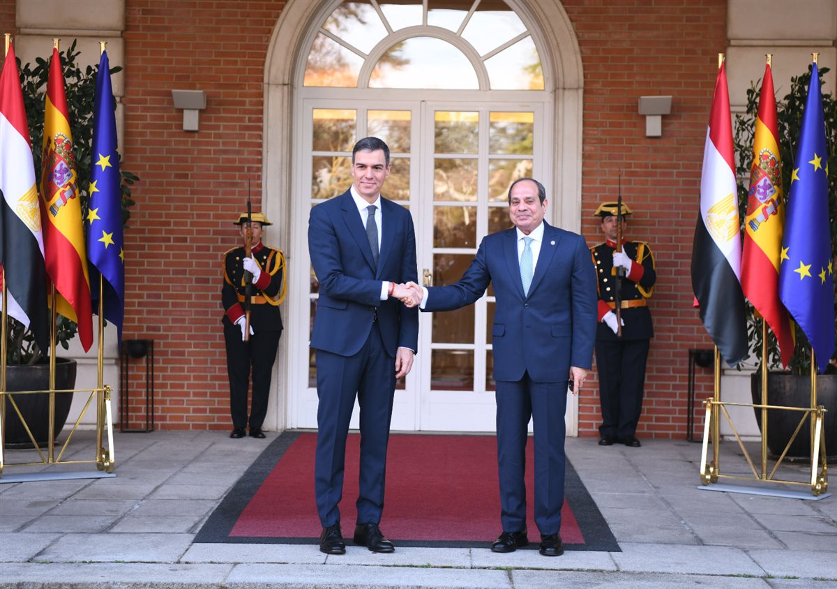 وعقد الجانبان جلسة مباحثات بمشاركة وفدي البلدين، تناولت مجمل العلاقات الثنائية بين البلدين وتطورات الأوضاع الإقليمية، حيث اكد رئيس الحكومة الإسبانية اتفاق أسبانيا الكامل مع موقف مصر الرافض لتهجير الفلسطينيين، مضيفًا أن إسبانيا ترفض بشكل حاسم وقاطع تهجير الفلسطينيين، وأنها ستدعم كل ما سوف يصدر عن القمة العربية المرتقبة، التي ستعقد بمصر، بشأن مسالة إعادة إعمار قطاع غزة والخطة المصرية في هذا الشأن وبما يضمن بقاء الفلسطينيين على أرضهم، مشددًا على ضرورة تطبيق حل الدولتين.