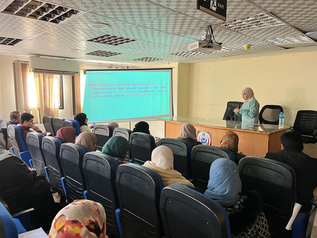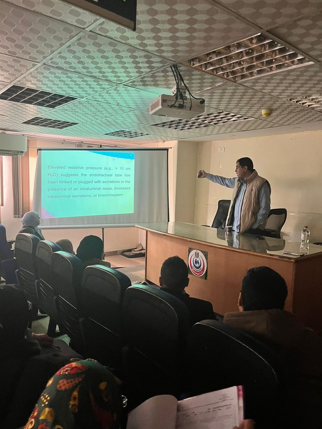 تضمنت الدورة محاضرات نظرية حول التنفس الصناعى فى حديثي الولادة وكيفية عمل الرئتين بالإضافة إلى نقص الأوكسجين وفرط بيلروبين الدم.