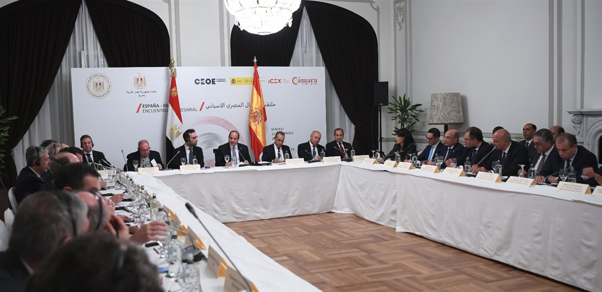 السيسي يدعو لشركات الإسبانية إلى زيادة حجم استثماراتها والاستفادة من المزايا والفرص الاستثمارية المتاحة في مصر