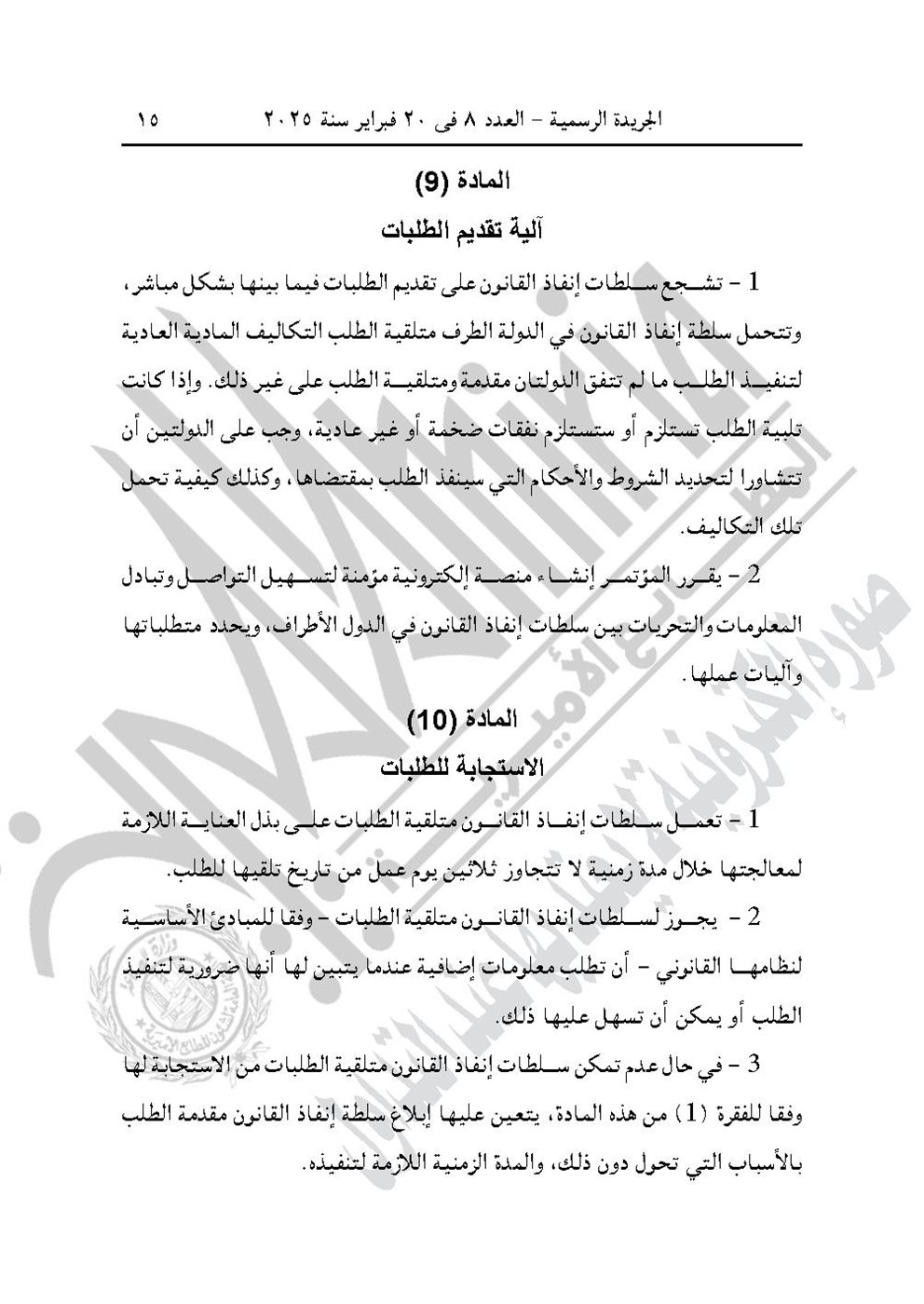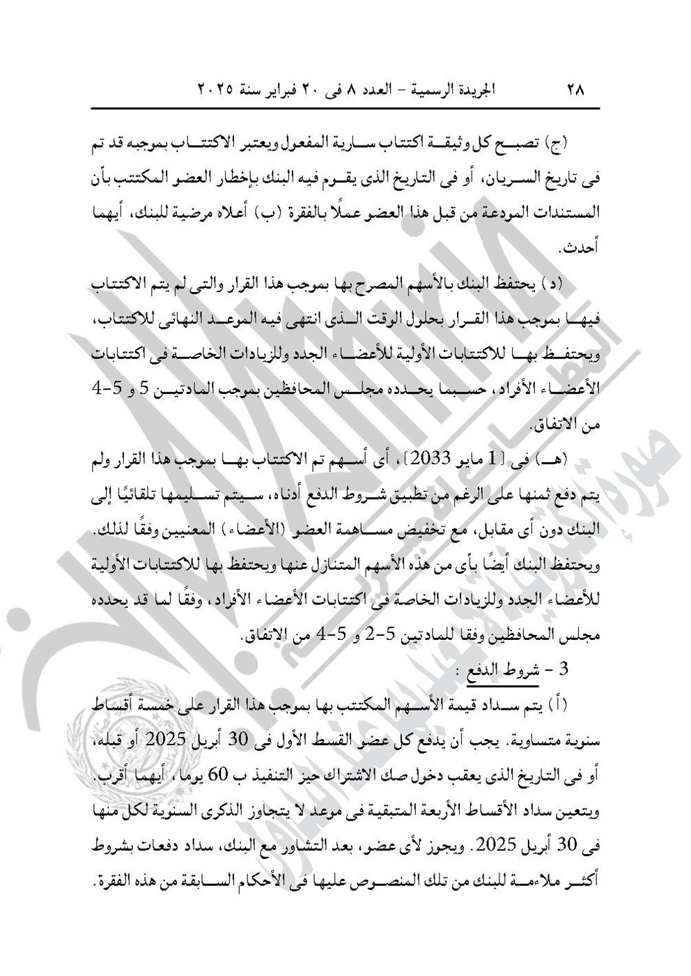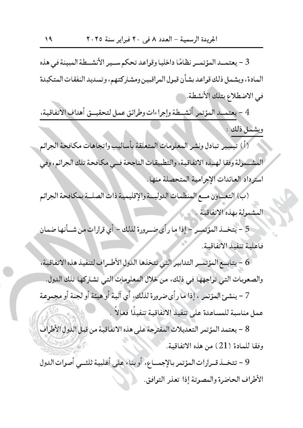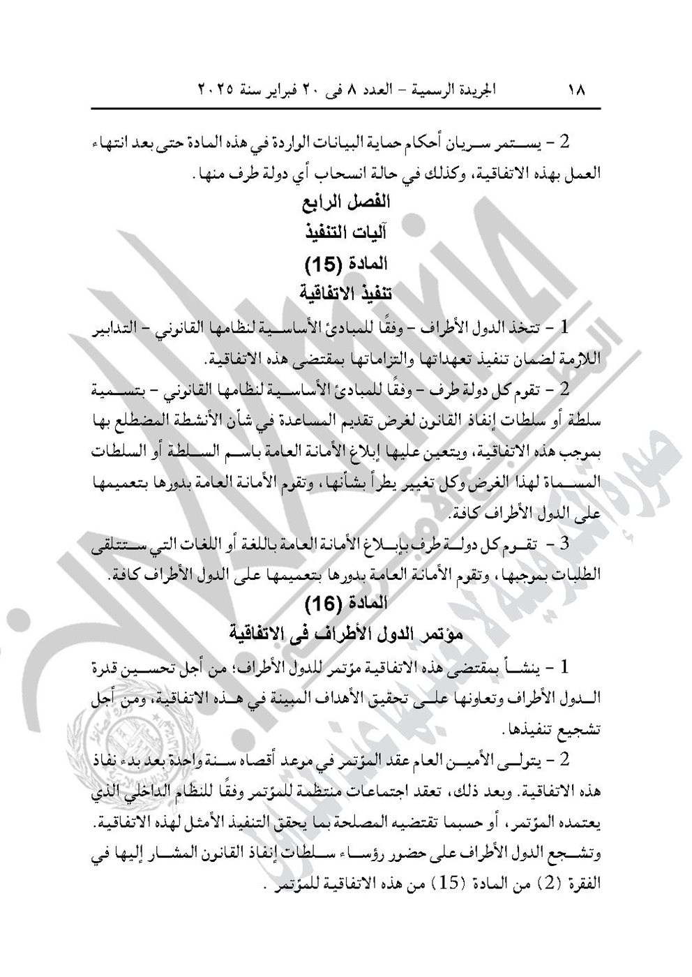 نشرت الجريدة الرسمية في عددها رقم 8 الصادر اليوم الخميس 20 فبراير 2025، قرارين جمهوريين جديدين للرئيس عبد الفتاح السيسي، بشأن الموافقة على انضمام جمهورية مصر العربية لاتفاقية مكة المكرمة لمكافحة الفساد، واكتتاب مصر بعدد (414) سهمًا في زيادة رأس مال البنك الأوروبي لإعادة الإعمار والتنمية.