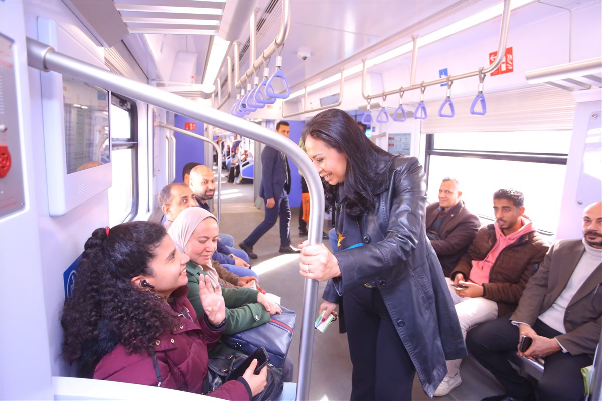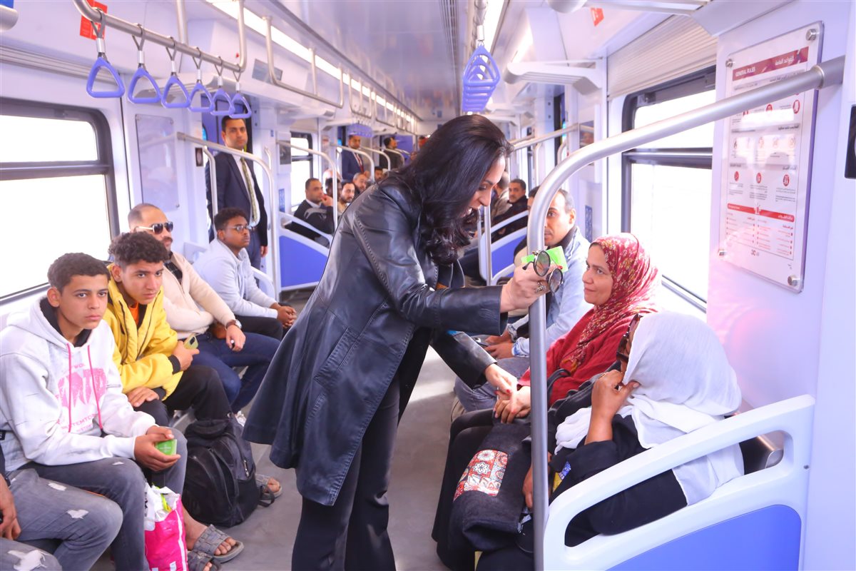 وحرصت وزيرة التضامن الاجتماعي على الاصطفاف في شباك التذاكر للحصول على تذكرة لاستقبال القطار، ثم استقلت إحدى عربات القطار؛ حيث التقت الموظفين الذين يستقلون القطار الكهربائي في طريقهم إلى عملهم بالعاصمة الإدارية الجديدة، وكذلك المواطنين الذين يستقلونه للتنقل بين المناطق المختلفة داخل القاهرة واستمعت إلى آرائهم ومتطلباتهم.