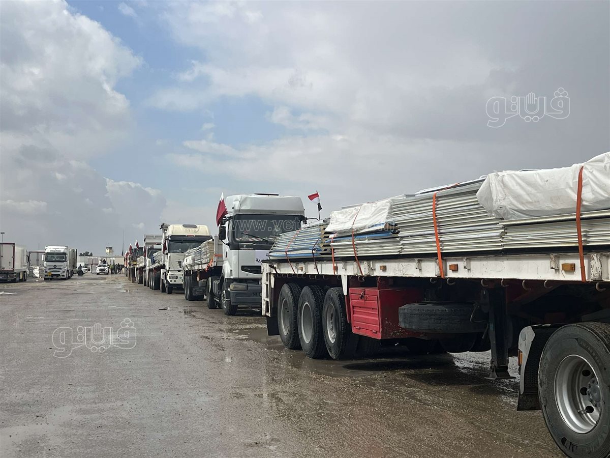 لحظة دخول المنازل المتنقلة من معبر رفح لقطاع غزة (صور)