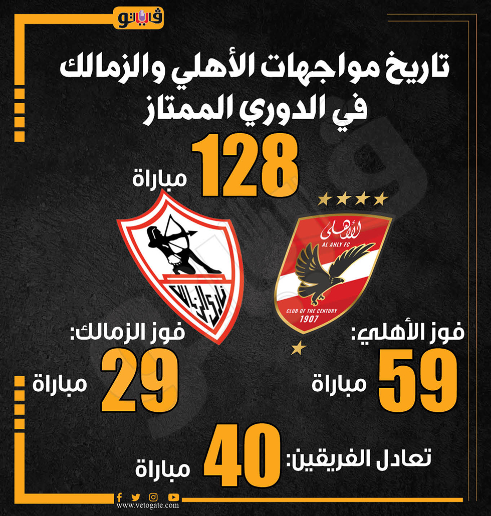 تاريخ مواجهات الأهلي والزمالك في الدوري الممتاز (إنفوجراف)