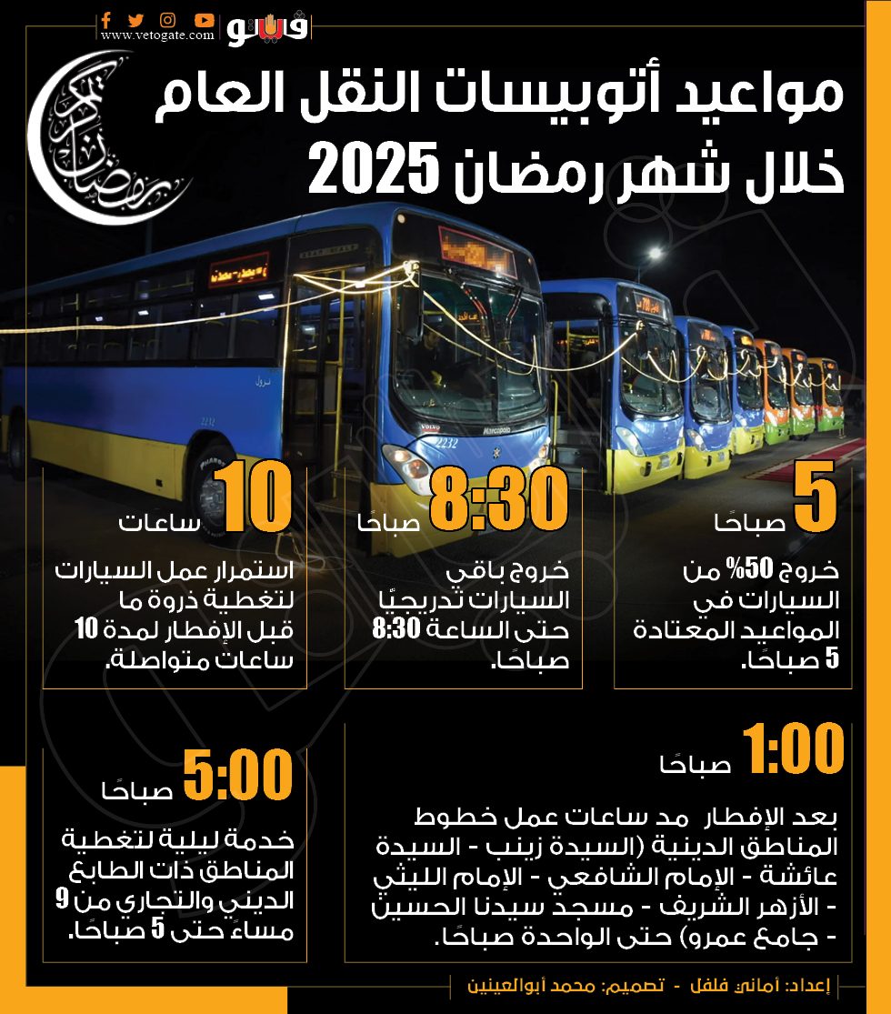 مواعيد أتوبيسات النقل العام خلال شهر رمضان 2025 (إنفوجراف)