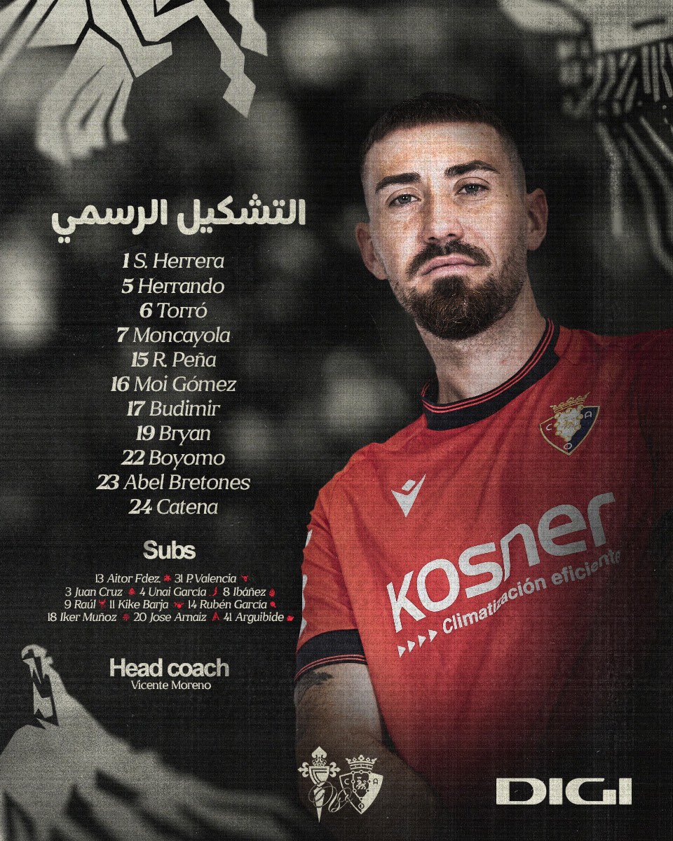 تعادل فريق أوساسونا مع نظيره سيلتا فيجو بنتيجة 0-0، في الشوط الأول من المباراة التي تجمع بينهما على ملعب بالايدوس ضمن منافسات الجولة الـ 25، من بطولة الدوري الإسباني.
