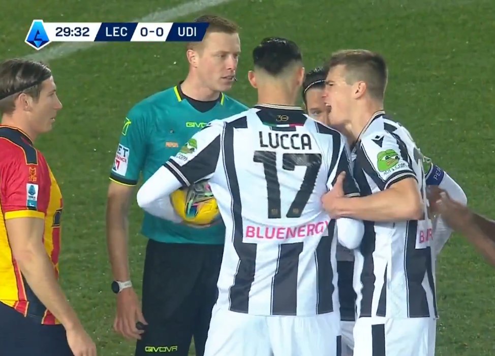 وتداول رواد مواقع التواصل الاجتماعي حادثة غريبة كان بطلها لاعب أودينيزي لورينزو لوكا، وذلك بعد خلاف حاد تحول إلى شجار حول تنفيذ ركلة جزاء.