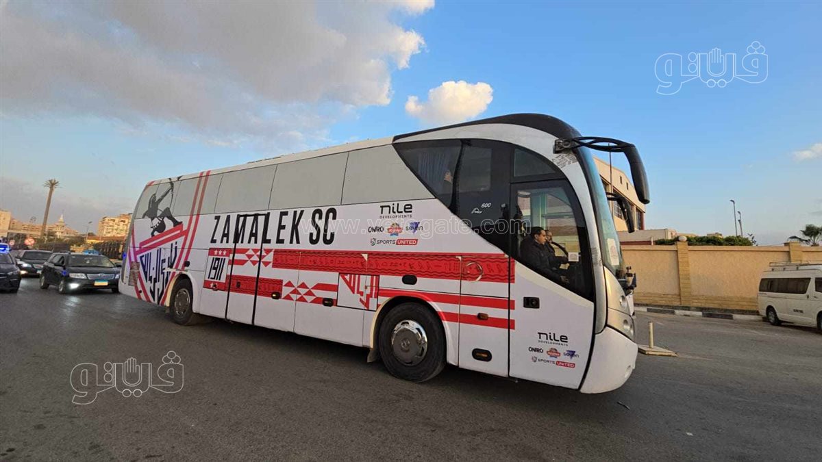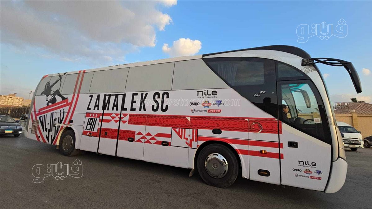 حافلة الزمالك تصل استاد القاهرة استعدادا لمواجهة الأهلي بالدوري