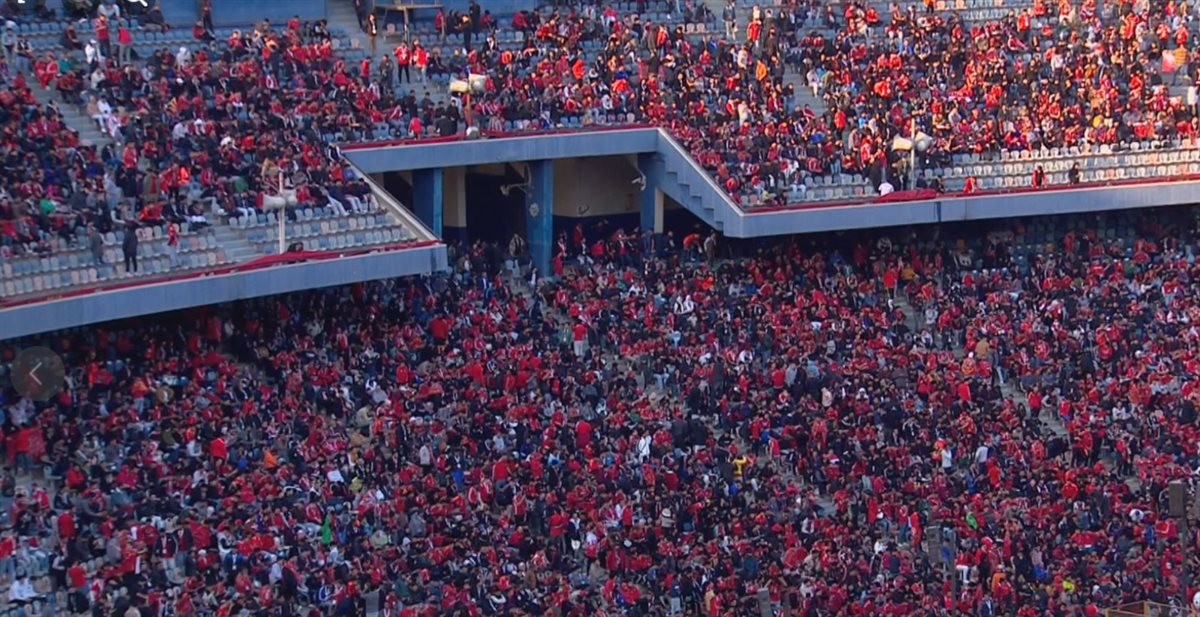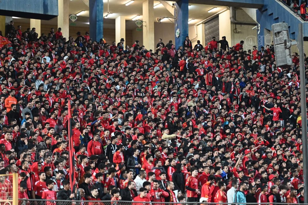 وشهدت مدرجات جماهير النادي الأهلي توافد حشود كبيرة من قبل مشجعي الأحمر قبل أقل من ساعتين من انطلاق اللقاء لدعم ومؤازره الفريق في مباراة الليلة.