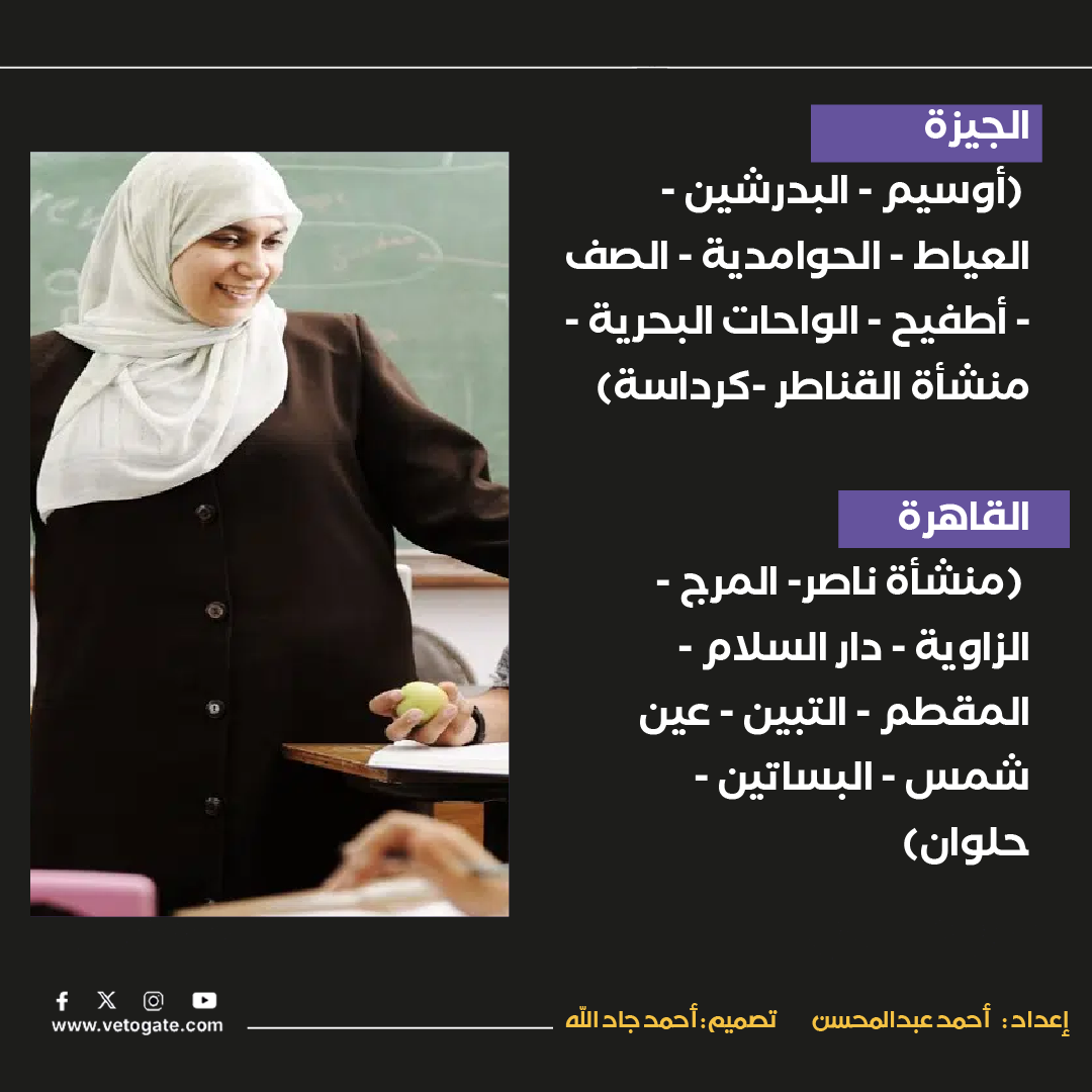 خريطة الأماكن المطلوب بها وظائف معلم مساعد مادة اللغة العربية (إنفوجراف)