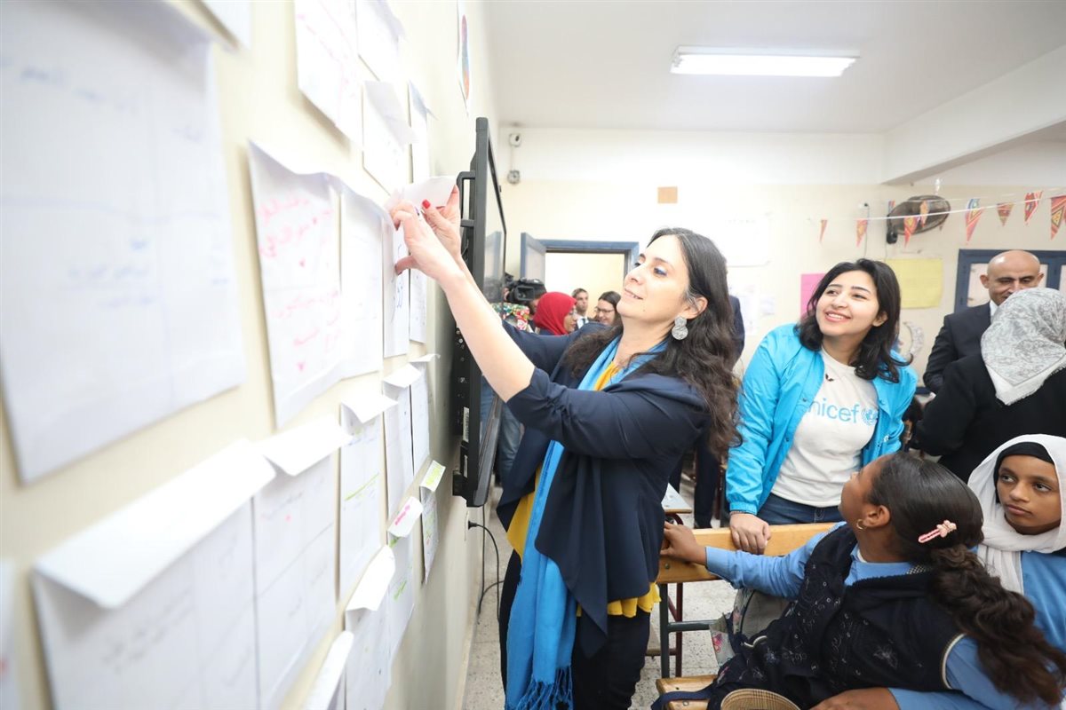 كما تفقد غرفة تحسين الأداء، المختصة بتدريب المعلمين على التعامل مع الطلاب ذوي الإعاقات المختلفة، من خلال ورش عمل تنظمها الوزارة بالتعاون مع يونيسف.