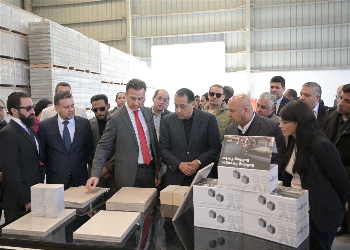 وخلال الجولة تفقد رئيس الوزراء مراحل خط انتاج الجبسون بورد، بداية من استقبال المواد الخام، ومرورًا بمنطقة التصنيع، من مراحل الخلط ثم التجفيف ثم التقطيع، وصولًا إلى المنتج النهائي والتغليف والتجهيز للشحن.
