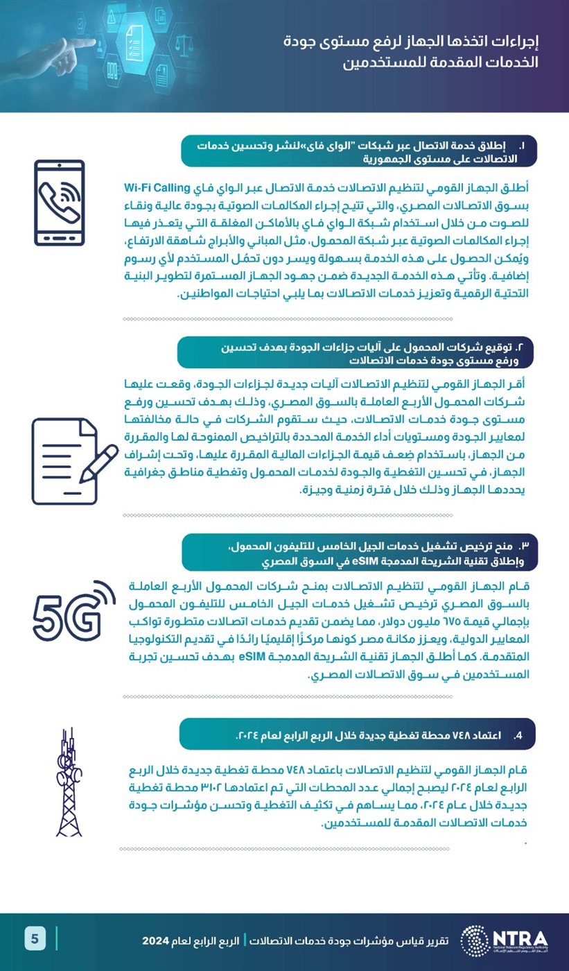 إجراءات اتخذها الجهاز القومي لتنظيم الاتصالات لرفع مستوى جودة الخدمات المقدمة للمستخدمين: