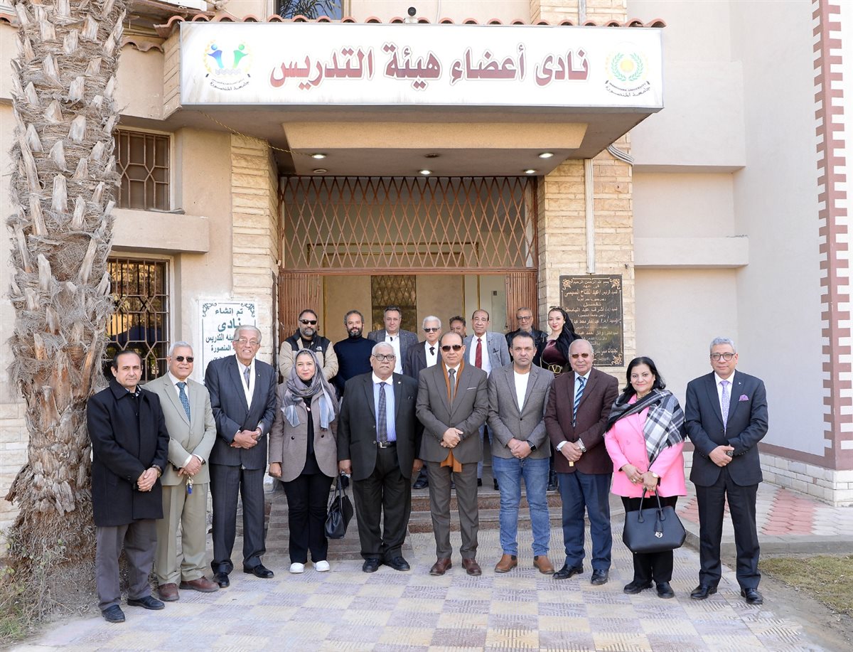 تم الافتتاح بحضور الدكتور محمد عبد العظيم نائب رئيس الجامعة لشؤون خدمة المجتمع وتنمية البيئة، ونواب رئيس الجامعة السابقين، الدكتور عبد القادر محمد عبد القادر رئيس مجلس إدارة نادي أعضاء هيئة التدريس، وعمداء الكليات الحاليين والسابقين، الأستاذ سعد عبد الوهاب أمين عام الجامعة، أعضاء هيئة التدريس.