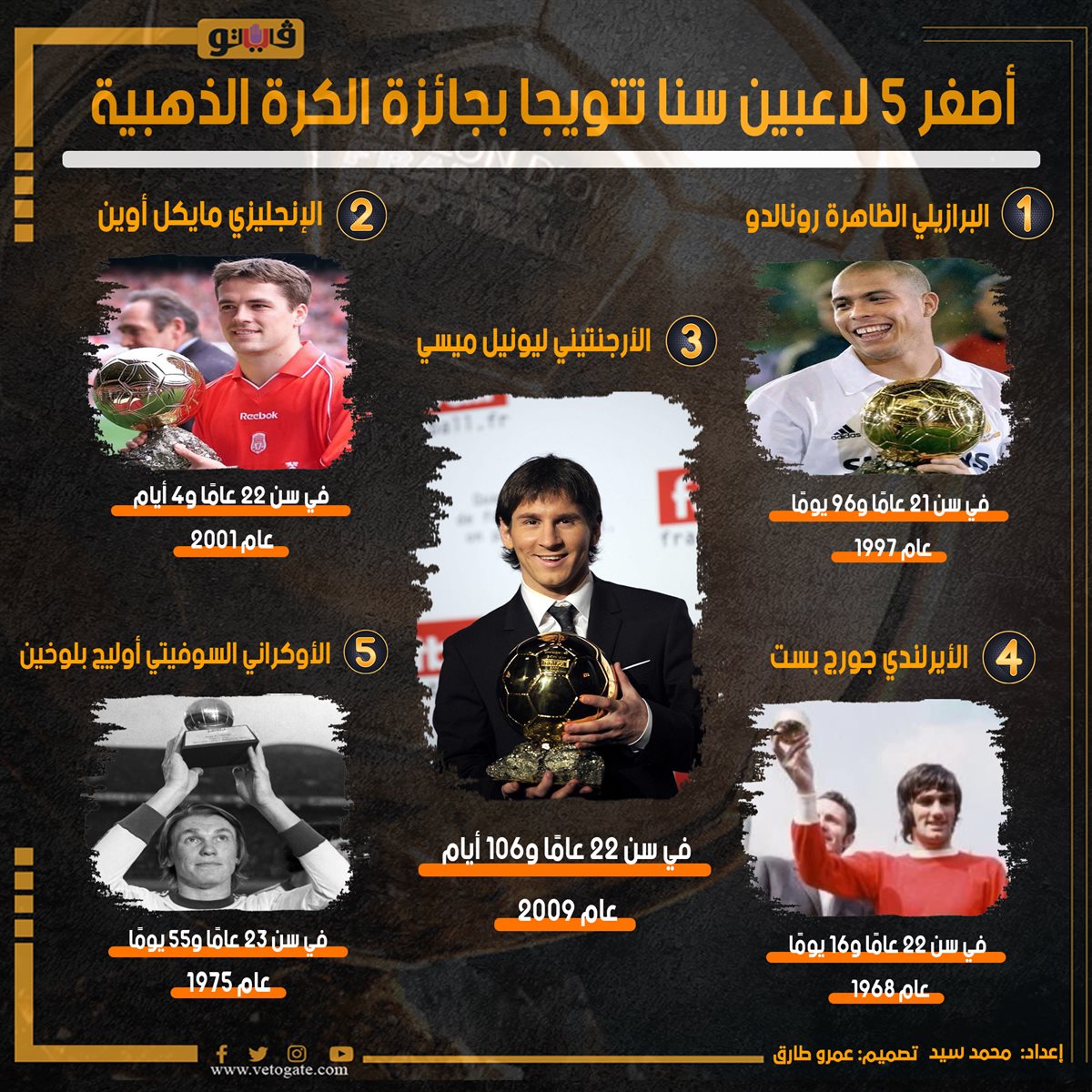 أصغر 5 لاعبين سنا تتويجا بجائزة الكرة الذهبية (إنفوجراف)