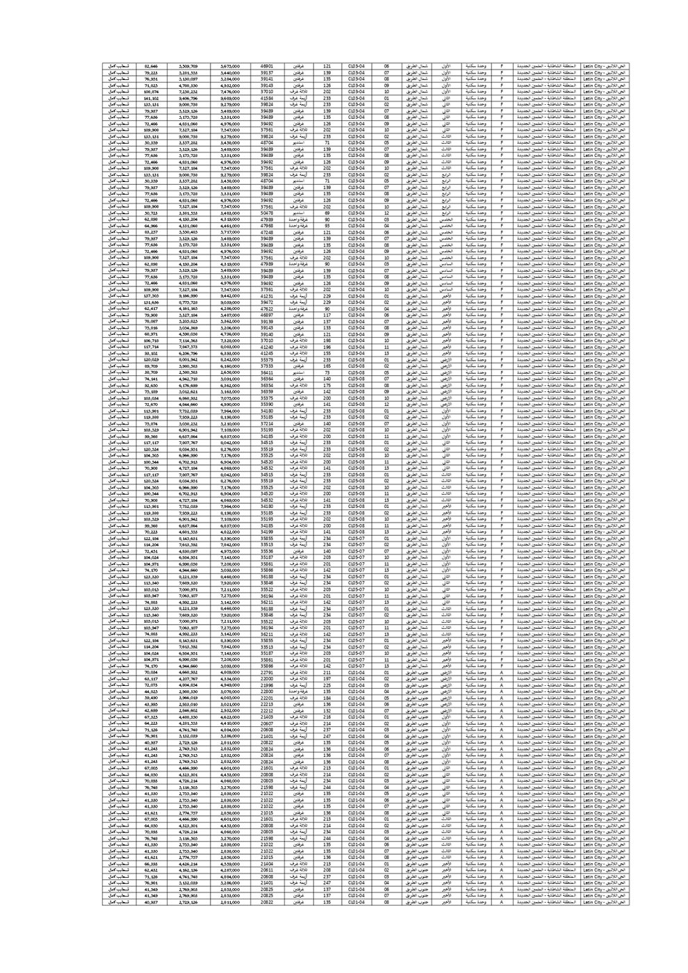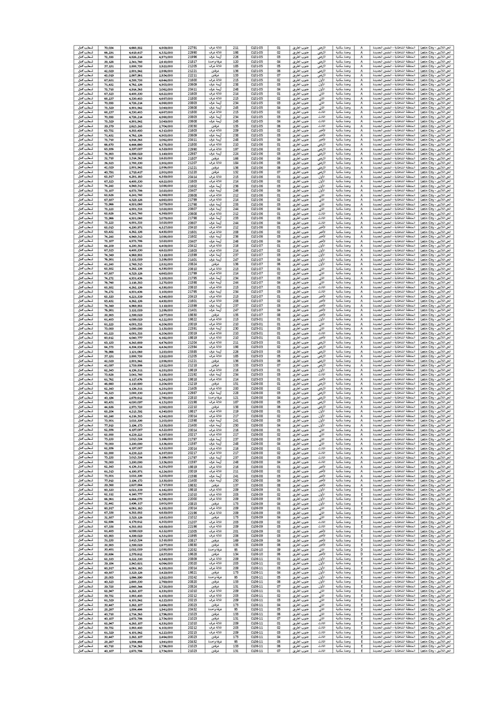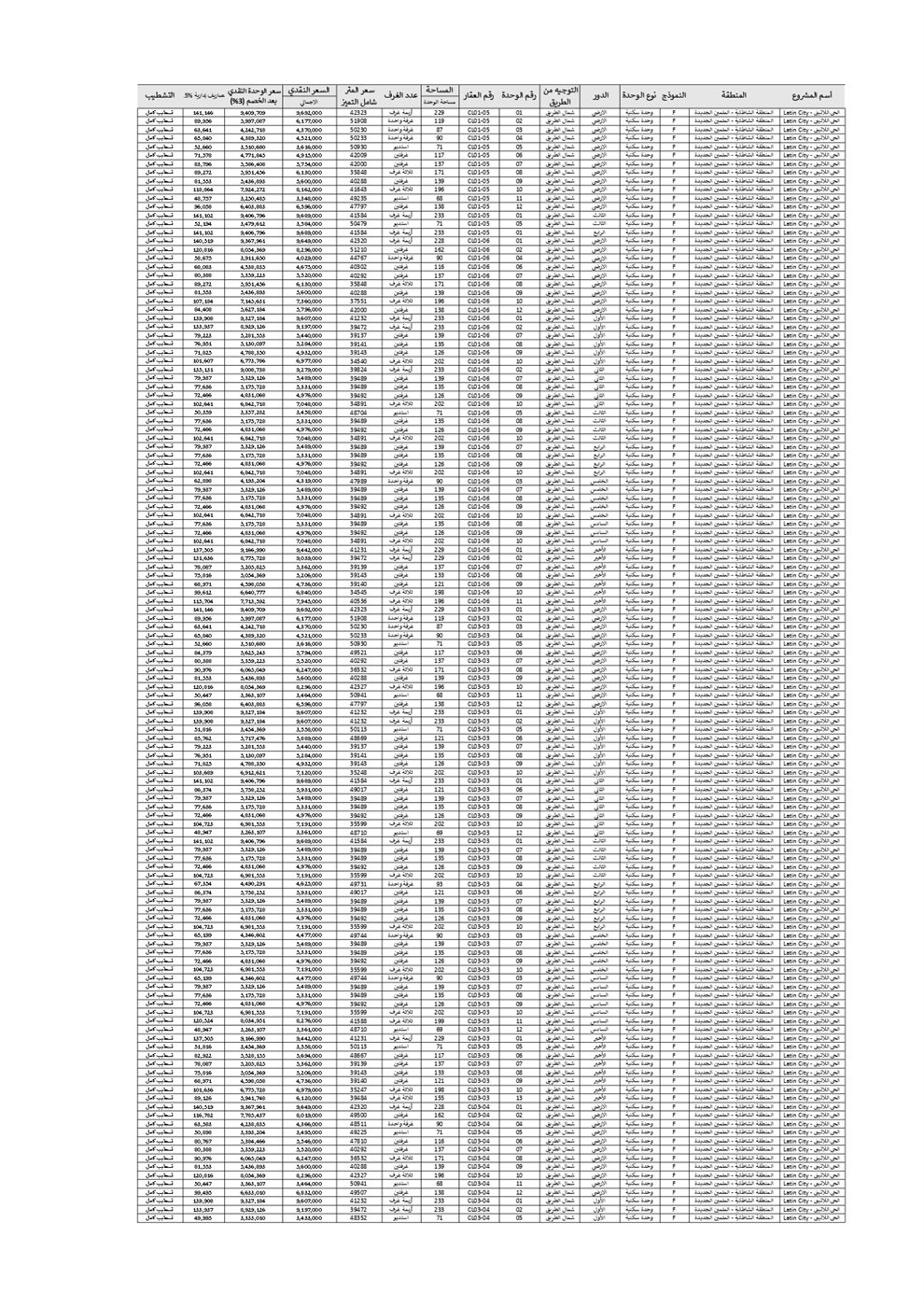 وقائمة أسعار الوحدات المطروحة كالتالي: