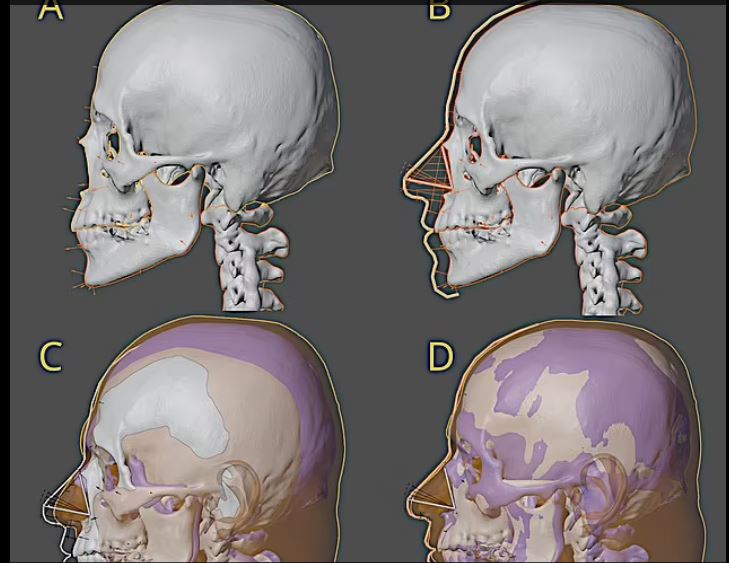 وبدأ الفريق بإعادة بناء الجمجمة افتراضيًّا، مستخدمين صورًا تحتوي على مراجع مكانية. ورغم عدم وجود الفك السفلي وفقدان بعض الأسنان، تمكنوا من استكمال معالمها بالاعتماد على البيانات الإحصائية والتماسك التشريحي.