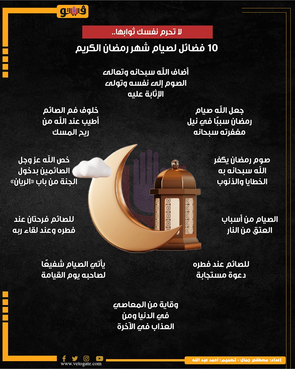 لا تحرم نفسك ثوابها.. 10 فضائل لصيام شهر رمضان الكريم (إنفوجراف)