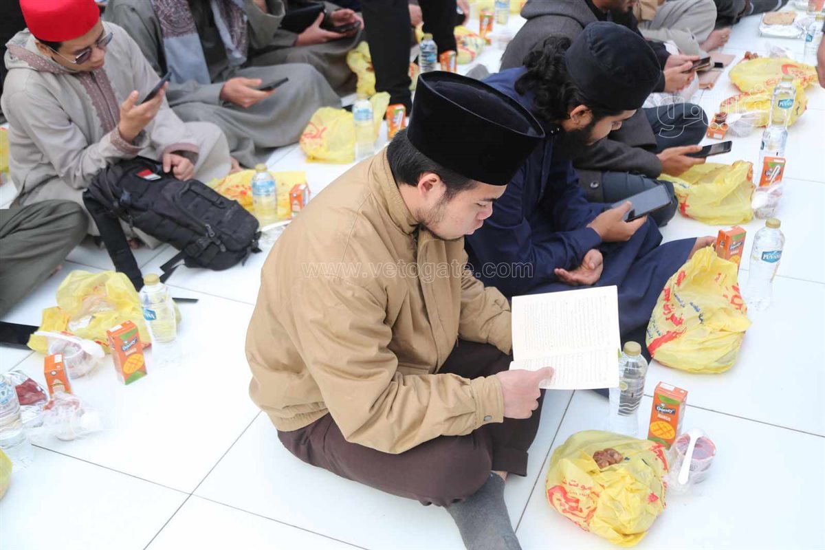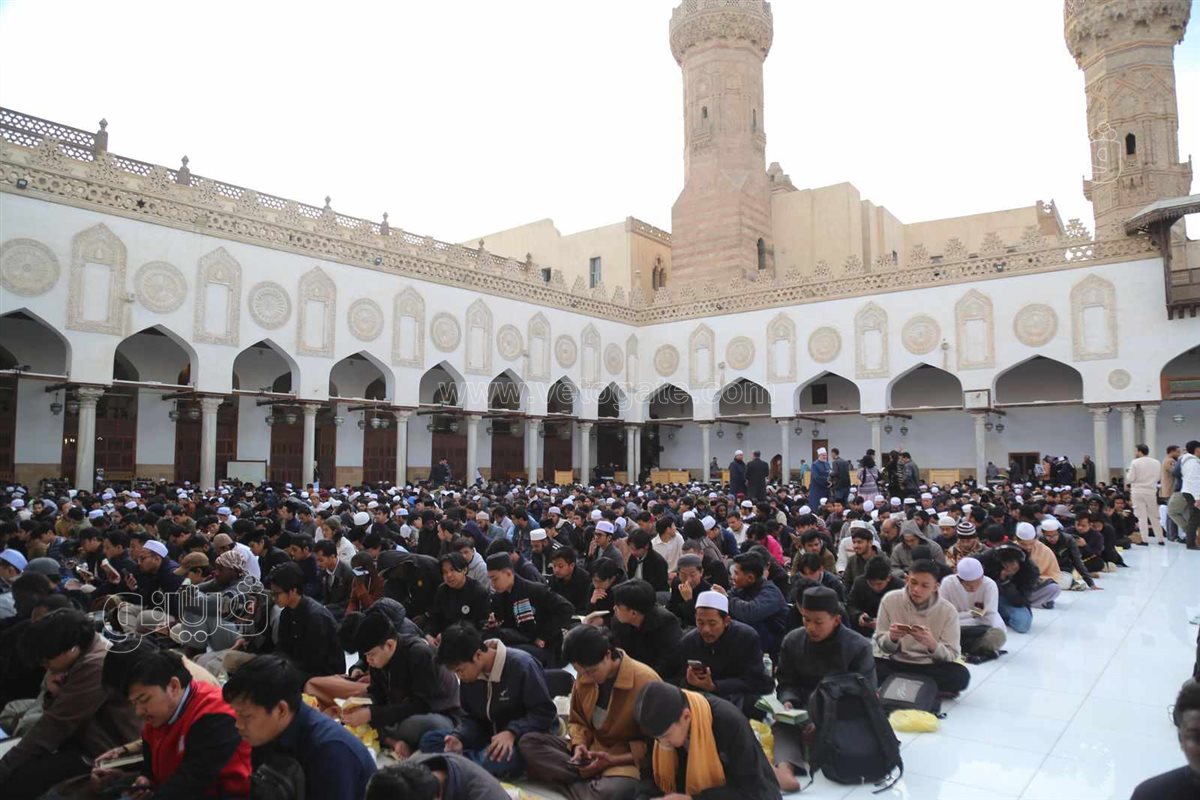 ورصدت عدسة فيتو امتلاء ساحة جامع الأزهر الشريف بالطلاب الوافدين، الذين حرصوا على استغلال الدقائق الأخيرة من الإفطار لقراءة القرآن والدعاء.