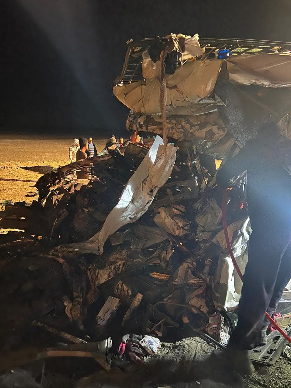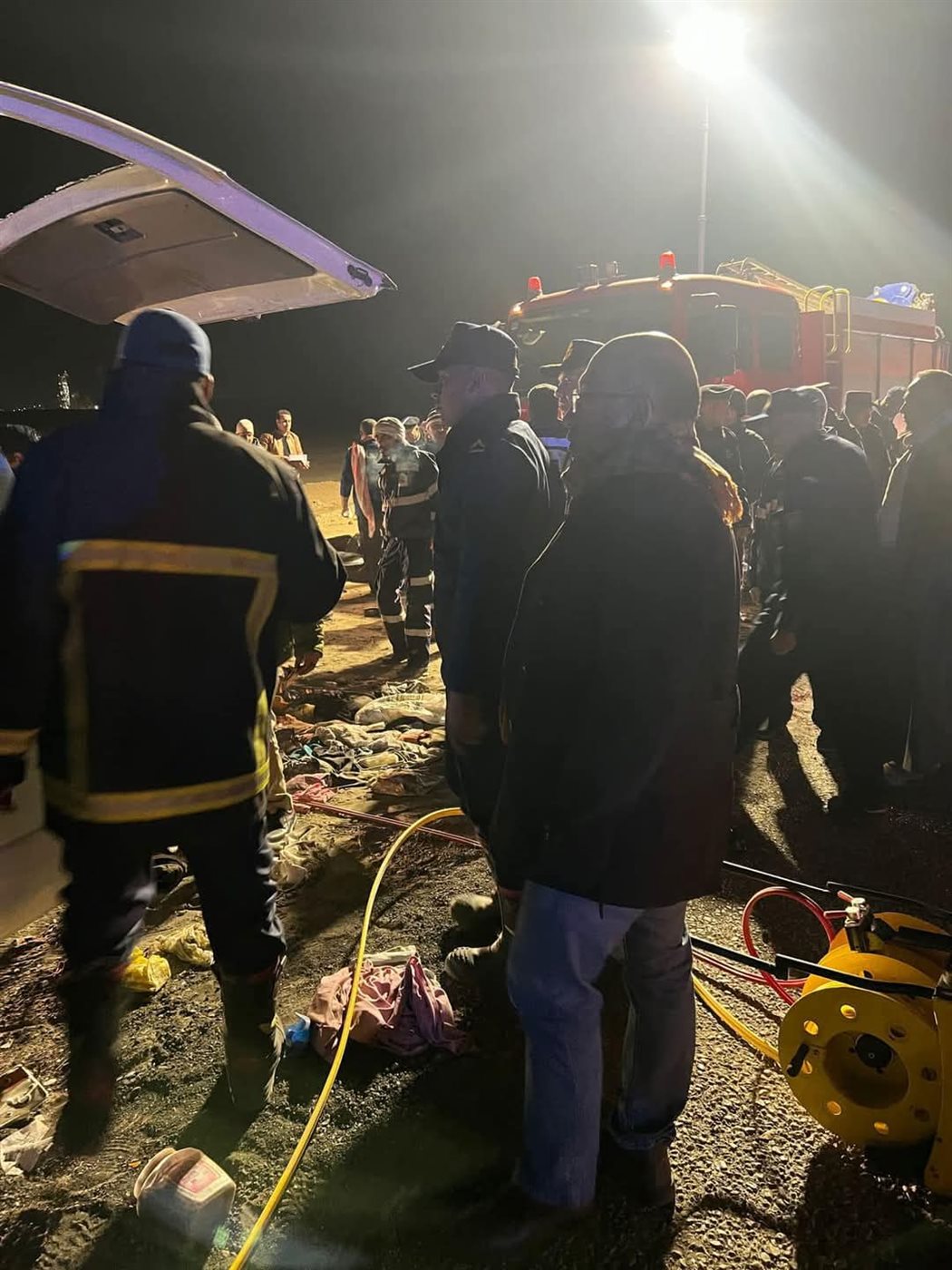 وانتقلت على الفور سيارات الإسعاف وقوات الأمن إلى موقع الحادث وتبين مصرع 13 شخصا وإصابة 2 آخرون وجارٍ نقل المصابين إلى المستشفيات القريبة، والوفيات لمشرحة المستشفى المركزي واتخاذ الإجراءات القانونية اللازمة.