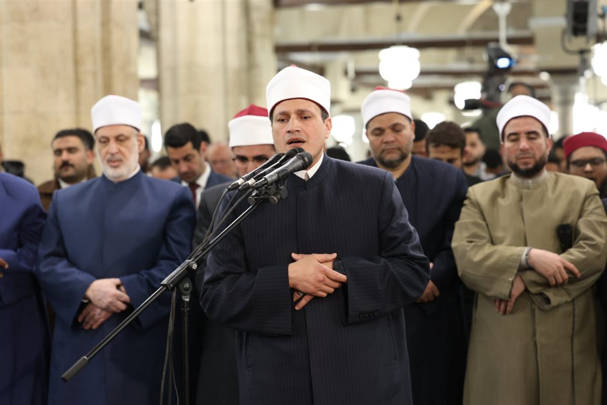 ورفع أذان العشاء الشيخ أحمد العجمي، الواعظ بالأزهر الشريف، وأقيمت صلاة العشاء من سورة آل عمران، بإمامة الشخ محمد فوزي، إمام القبلة بالجامع الأزهر، الذي قرأ برواية الإمام حفص عن الإمام عاصم.