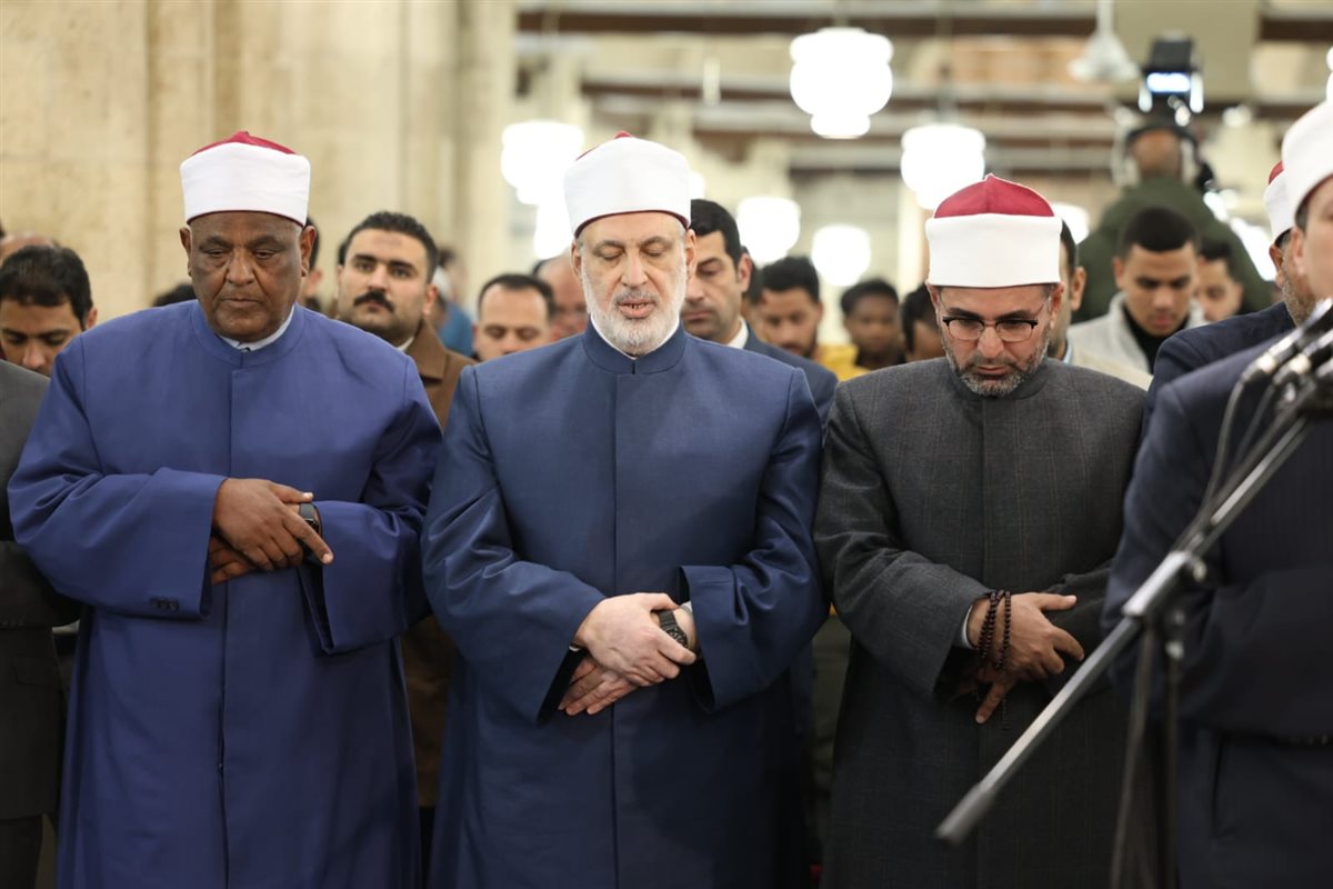 وتقدَّم المصلين الدكتور محمد الضويني، وكيل الأزهر، والدكتور عباس شومان، الأمين العام لهيئة كبار العلماء، رئيس مجلس إدارة المنظمة العالمية لخريجي الأزهر، والدكتور أتى خضر، رئيس قطاع مكتب شيخ الأزهر، والدكتور محمود الهواري، رئيس الإدارة المركزية للدعوة والإعلام الديني بمجمع البحوث الإسلامية، والشيخ حسن عبد النبي، وكيل لجنة مراجعة المصحف، والدكتور هاني عودة، مدير عام الجامع الأزهر، ونخبة من علماء وقيادات الأزهر.
