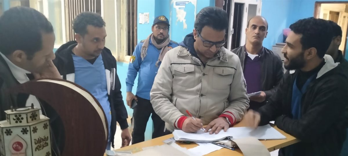 وأثناء التفقد تلاحظ وجود طالب بكلية الطب بالسنة الرابعة موجود بالاستقبال يكشف على المرضى ووجه دويدار مرافقيه بتحرير محضر إثبات حالة وتحويل الأمر للشؤون القانونية بالمديرية وتلاحظ عدم وجود خيوط أو أدوية بالاستقبال على الرغم من إمداد المديرية المستشفى بالأدوية والمستلزمات الخاصة بالحالات الطارئة.