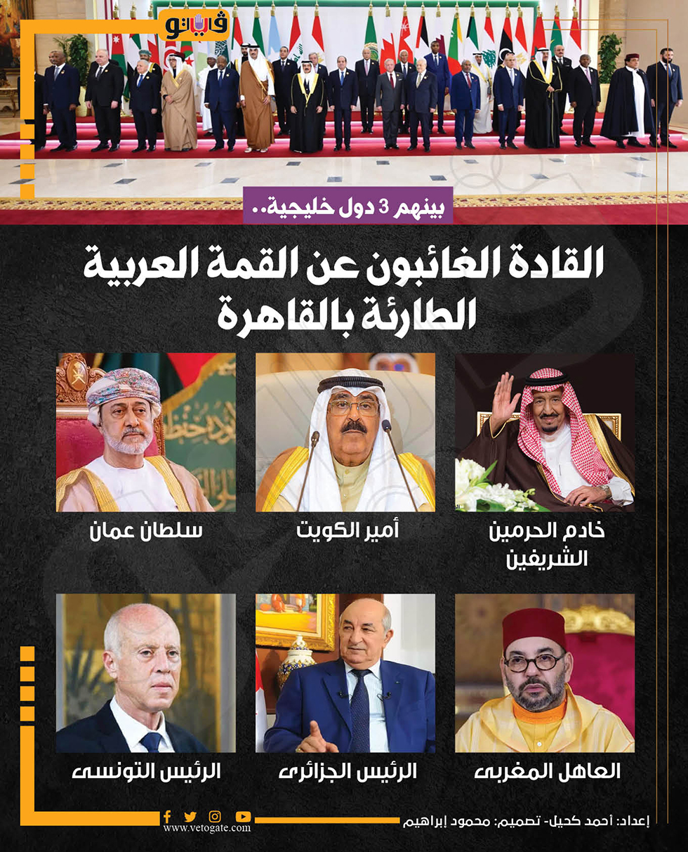 بينهم 3 دول خليجية.. القادة الغائبون عن القمة العربية الطارئة بالقاهرة (إنفوجراف)
