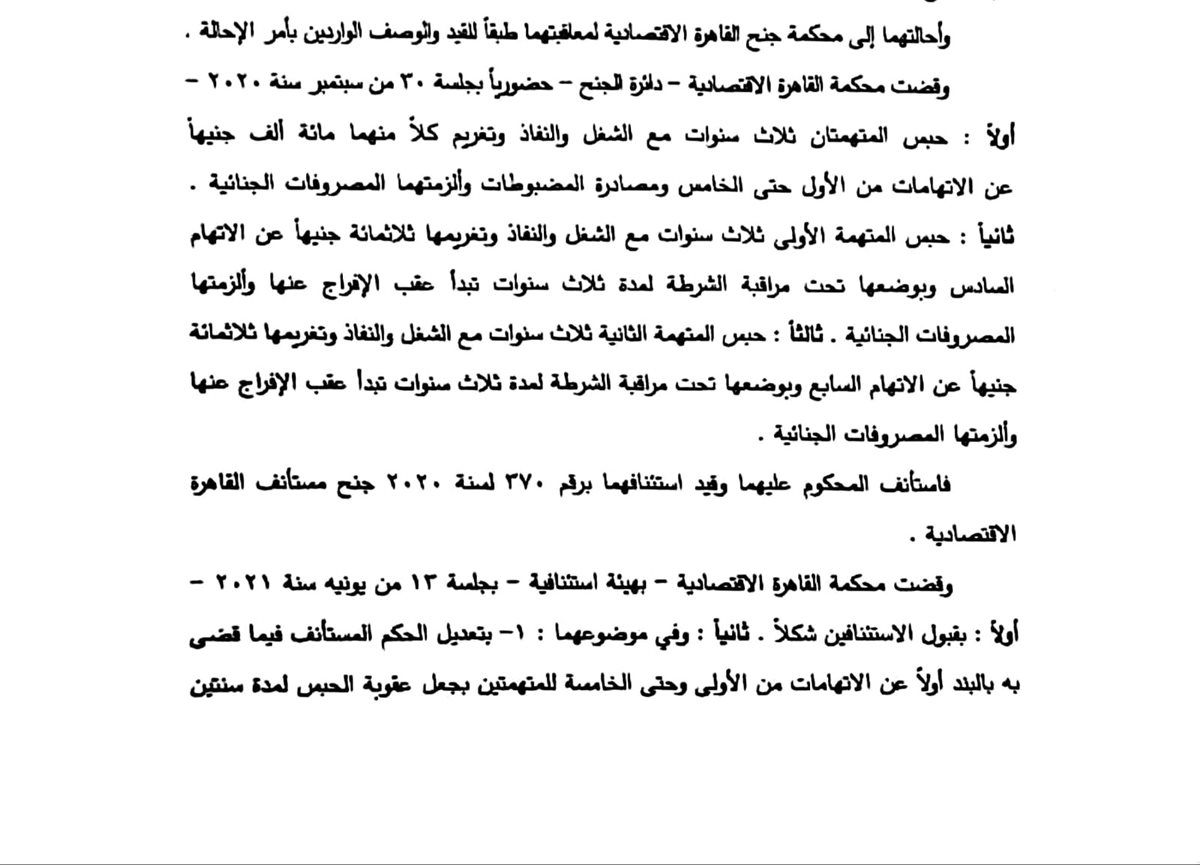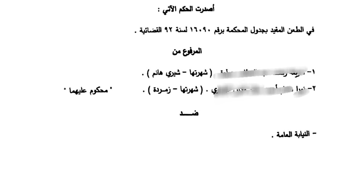 النقض تُخفف عقوبة شيري هانم وزمردة إلى عامين (مستندات)