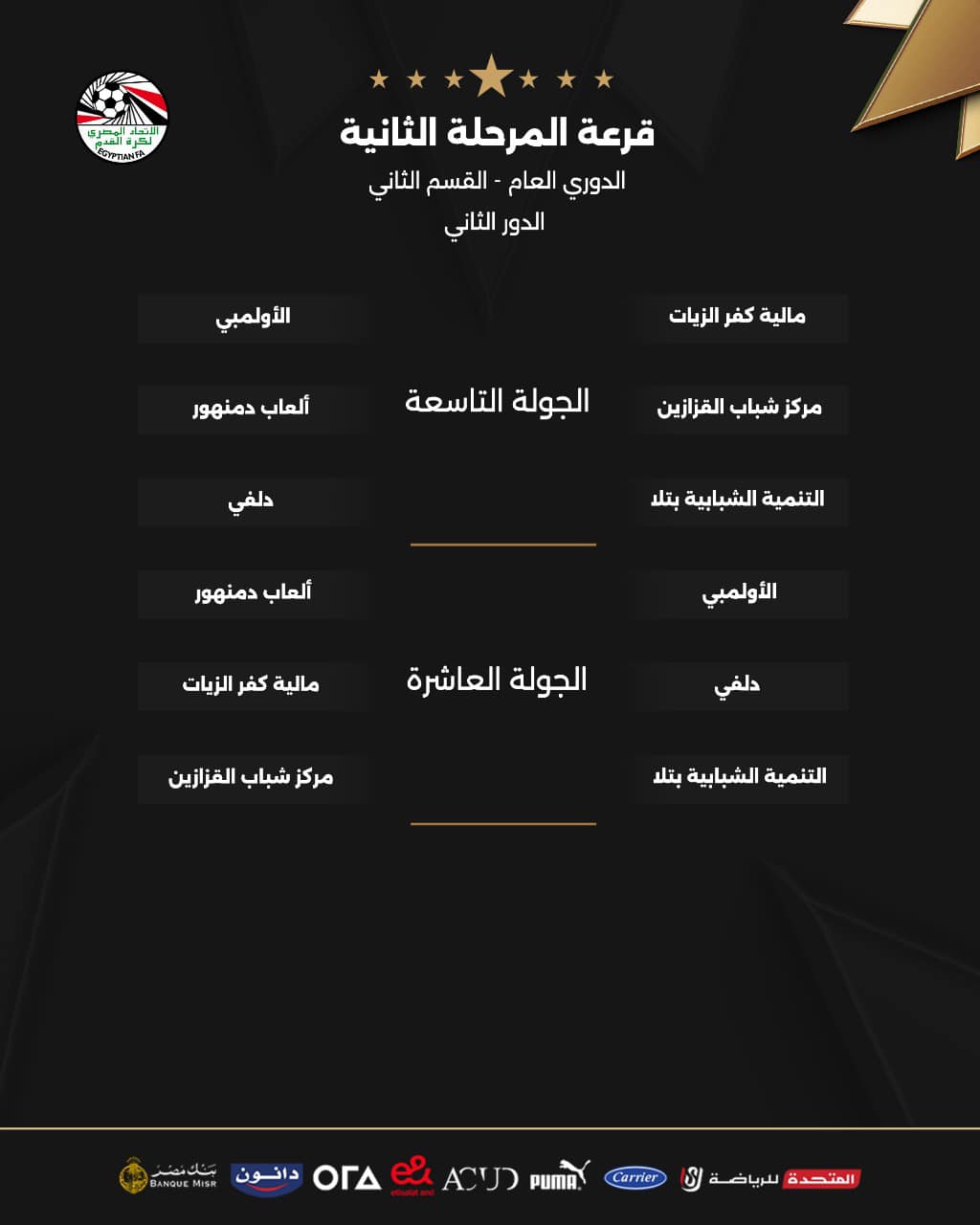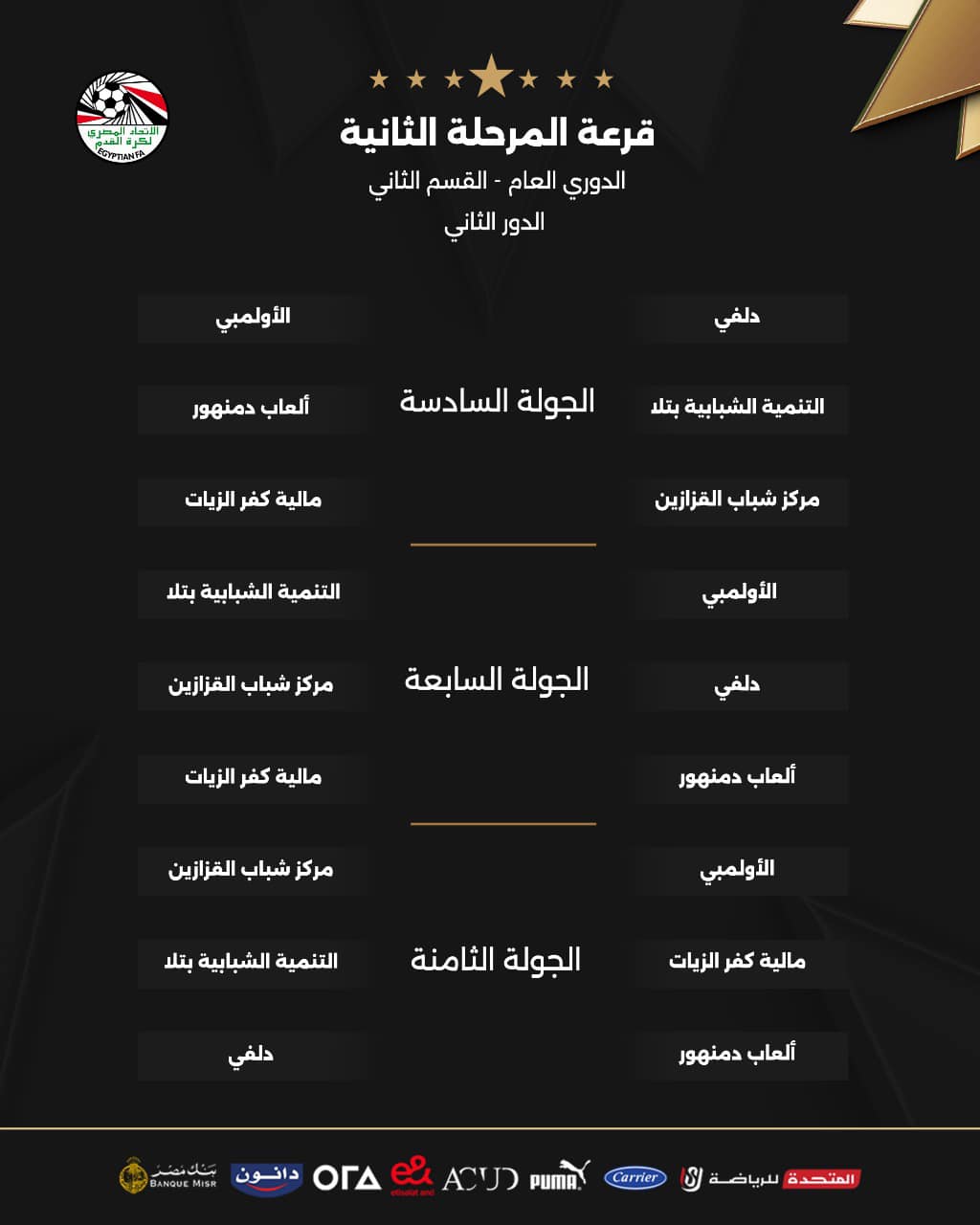 قرعة المرحلة الثانية لدوري القسم الثاني للمجموعات الثلاث