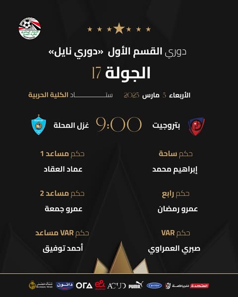 حكام مباراة غزل المحلة وبتروجيت